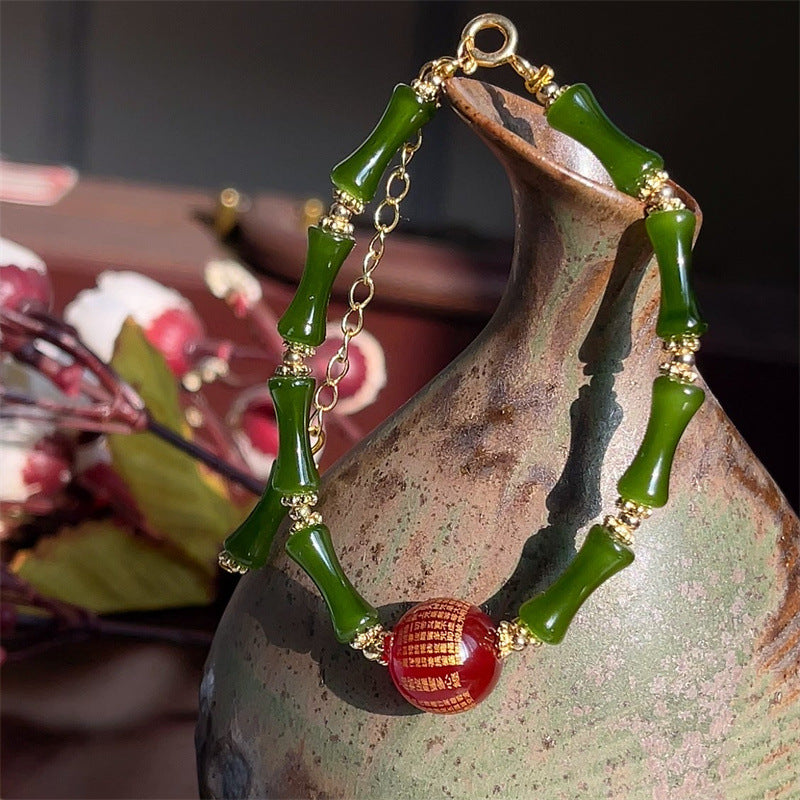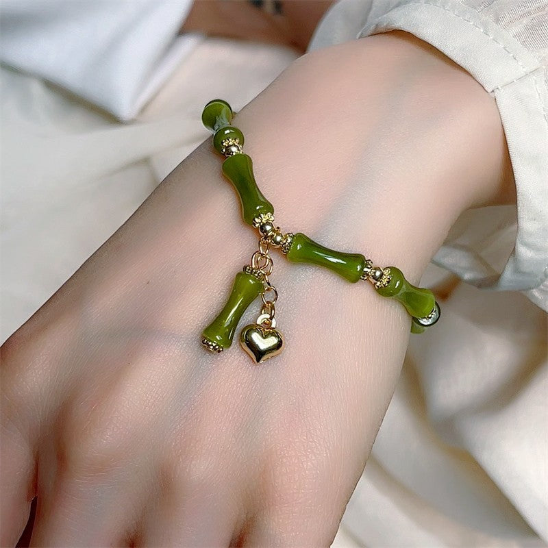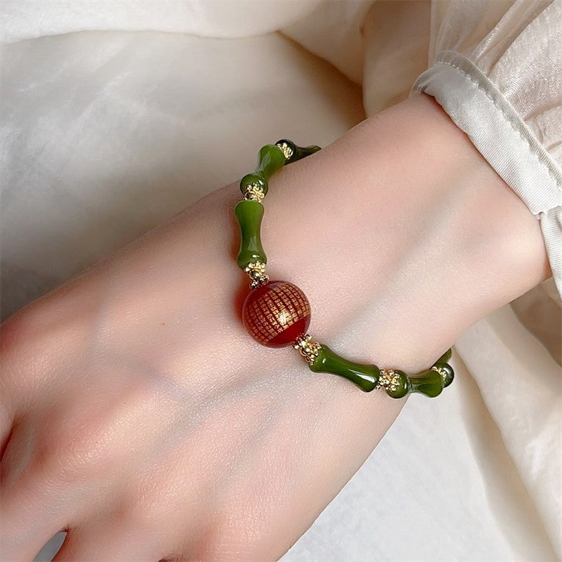 Green Bamboo Three-life Stone Good Luck Exam Shore Bracelets