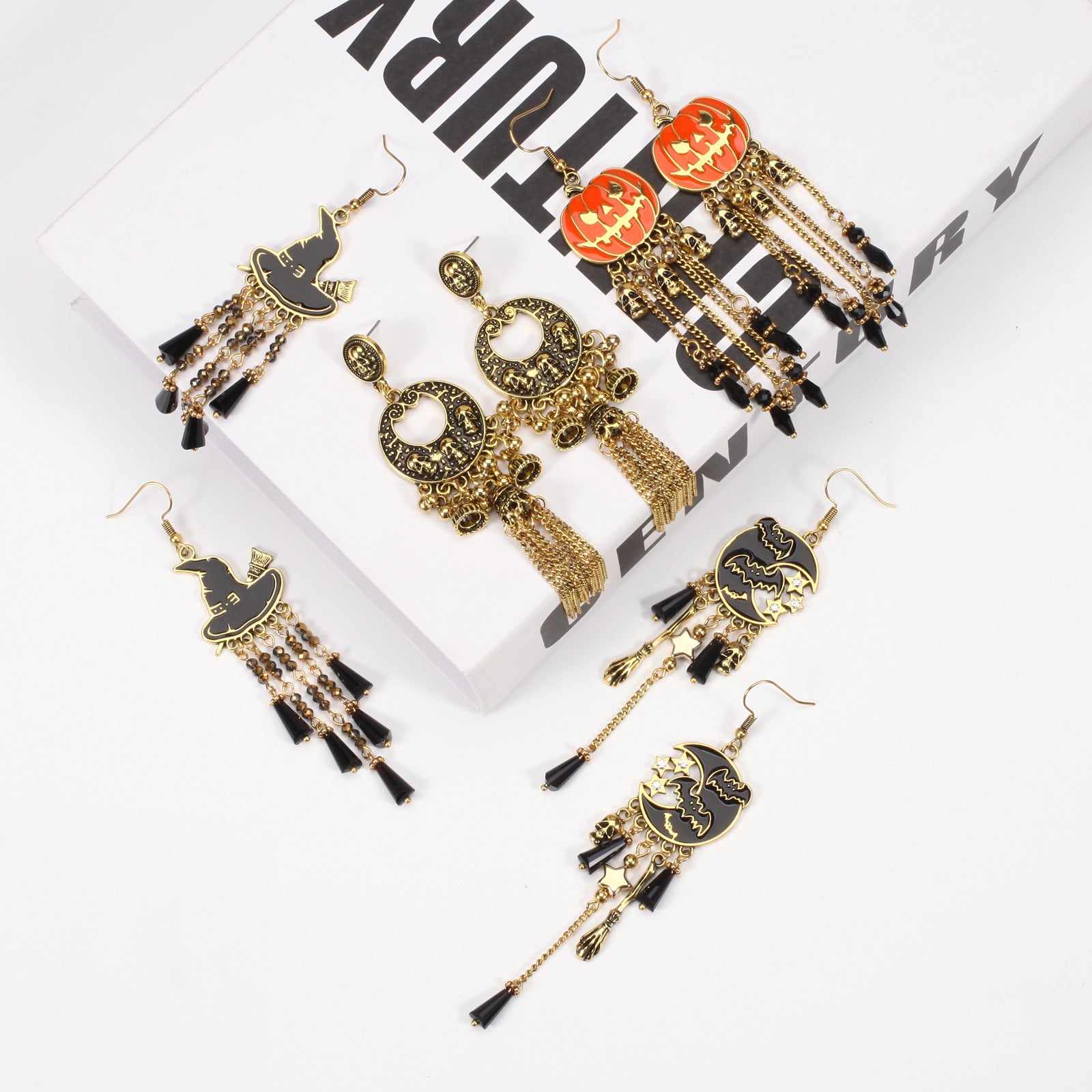 Hat Ghost Skull Bat Spider Web Earrings