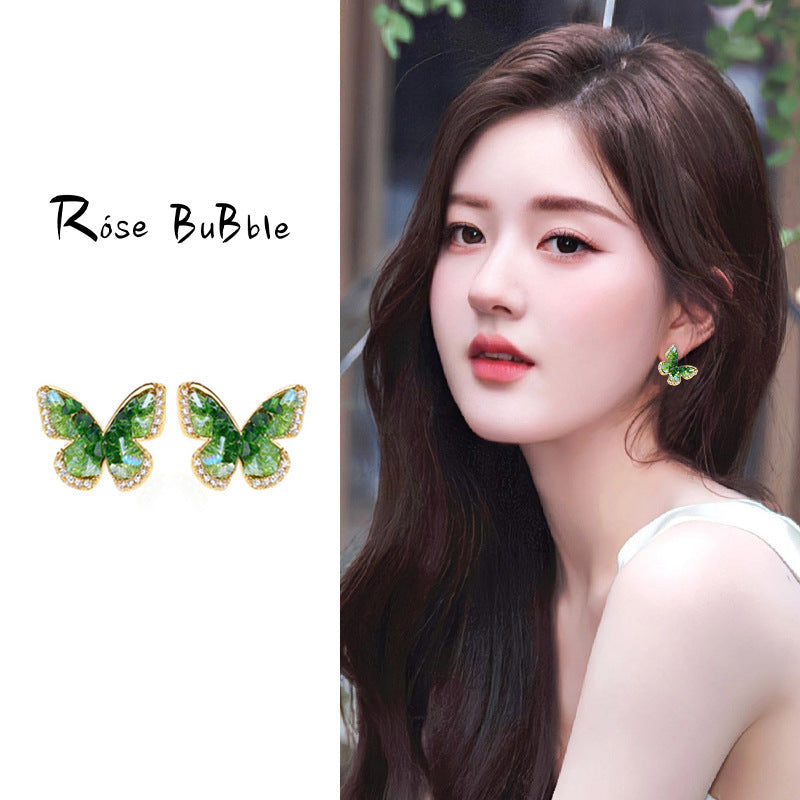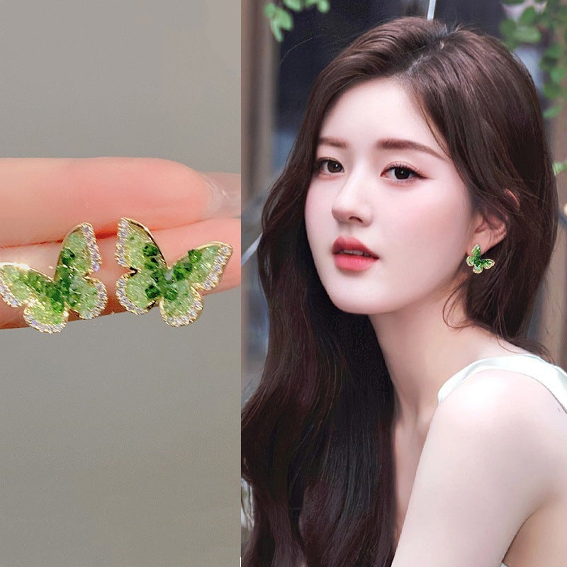 High-grade Sier Needle Gradient Green Crystal Earrings