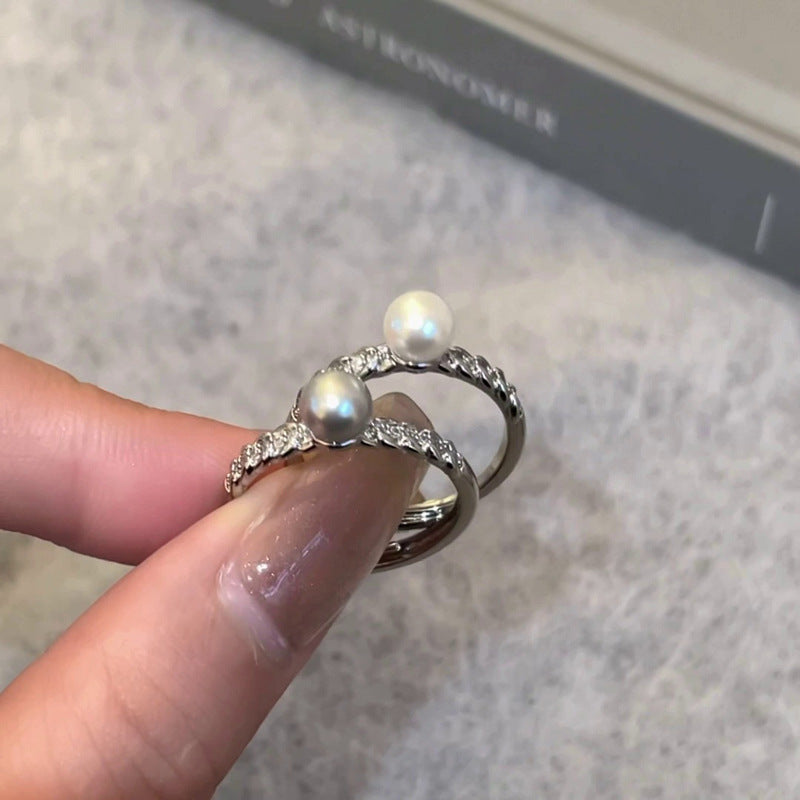 Korean Gentle Shell Pearls Olive Leaf Full Diamond Rings