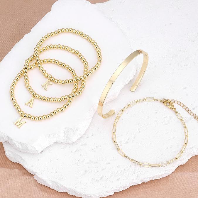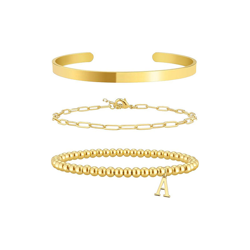 Letter Golden Balls Beaded Clip Glossy Bracelets
