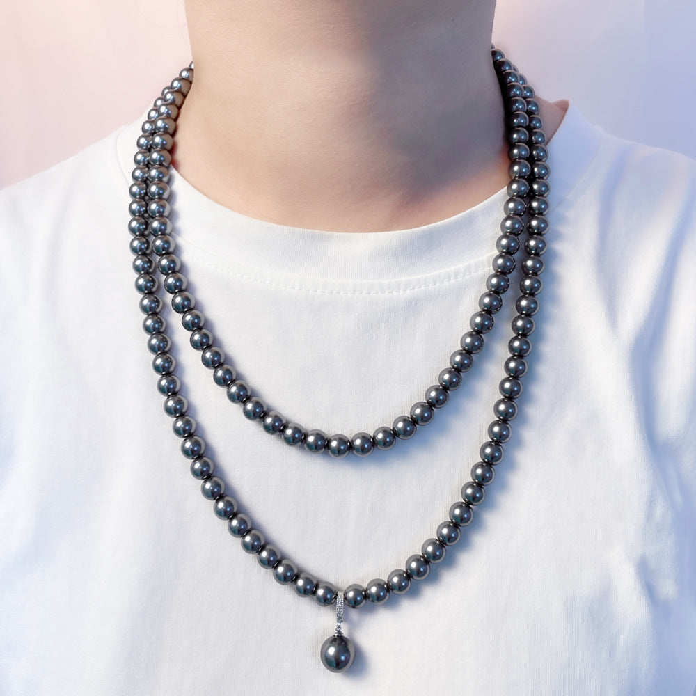 Light Black Pearl Long Luxury Twin Sweater Chain Necklaces