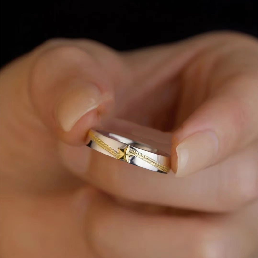 Lovers Fans Colorful Five-pointed Star Couple Wedding Shining Classic Rings