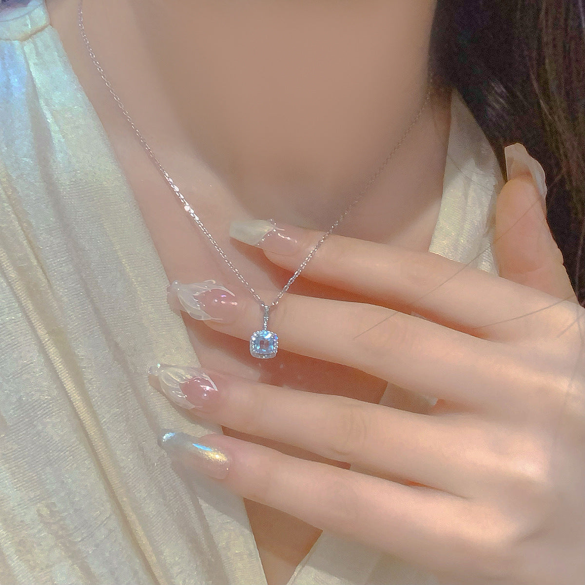 Luxury French Ear Simple Lake Water Blue Delicate Open-end Earrings