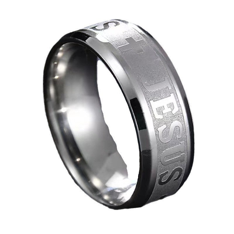 Men's Beveled Jesus Stainless Steel Personality Fashion Rings