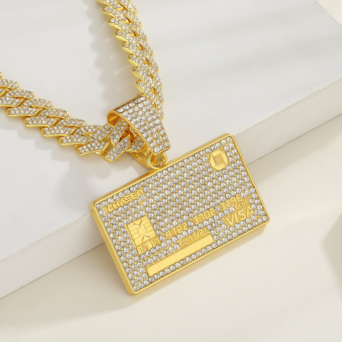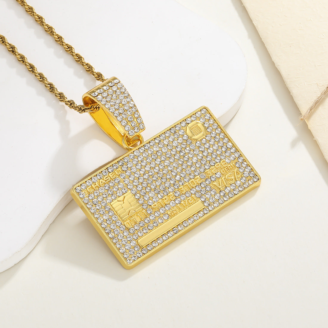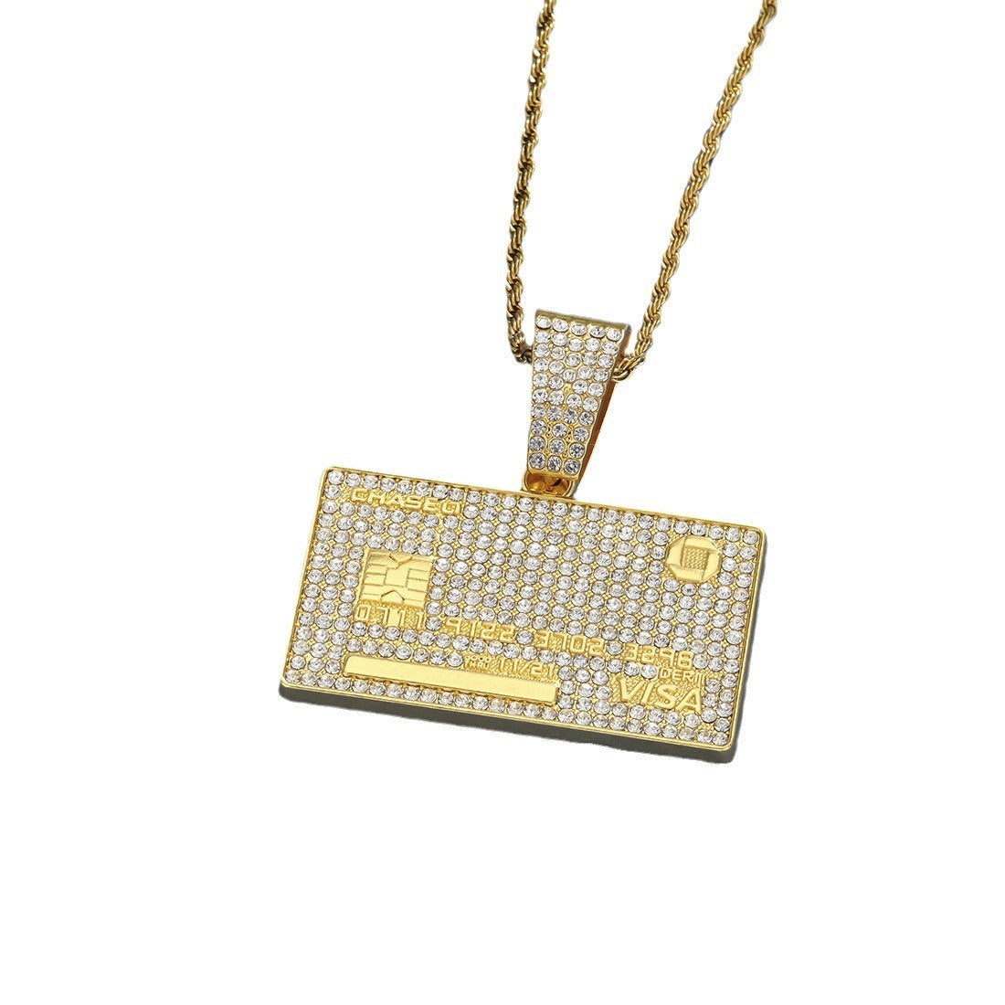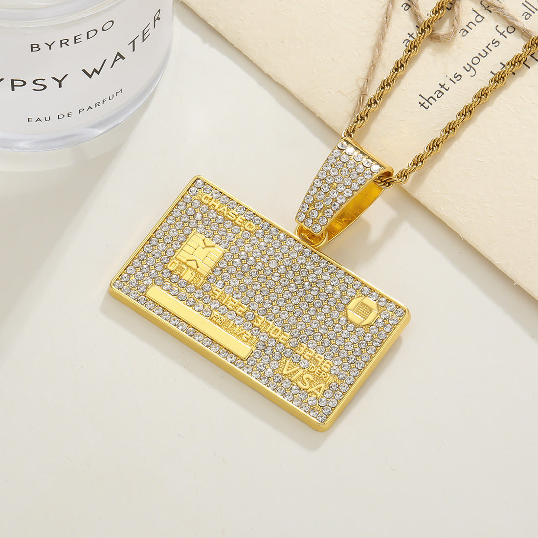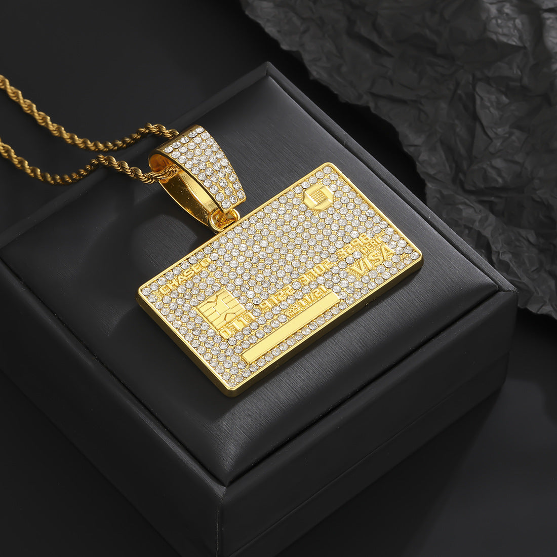 Men's Hip Hop Full Diamond Domineering Bank Card Tag Necklaces