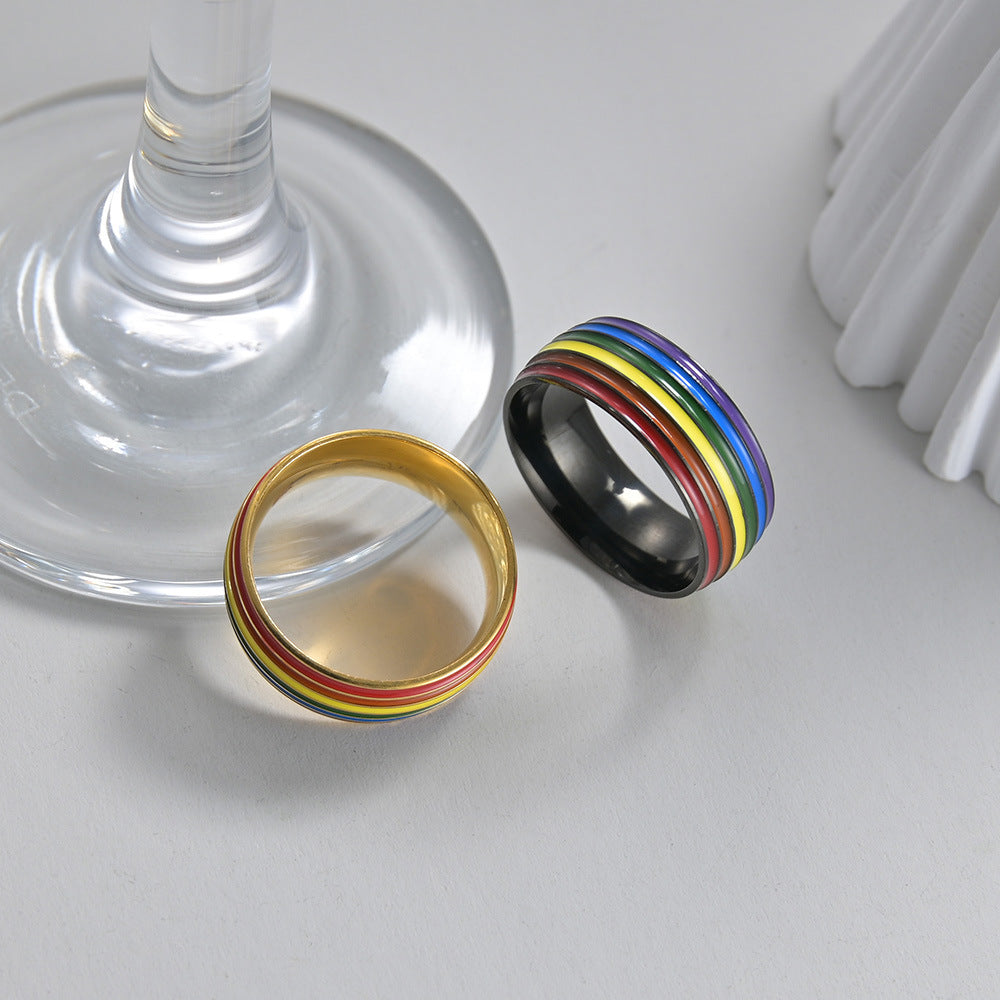 Men's Multicolor Rainbow Ornament Dripping Titanium Steel Rings