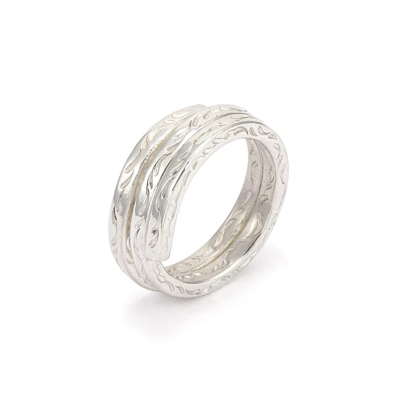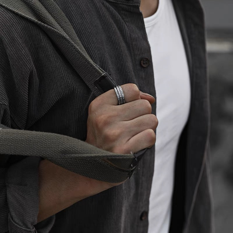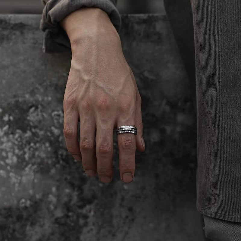 Men's Pattern Fashionable Sterling Sier Handmade Wide Double Layer Rings