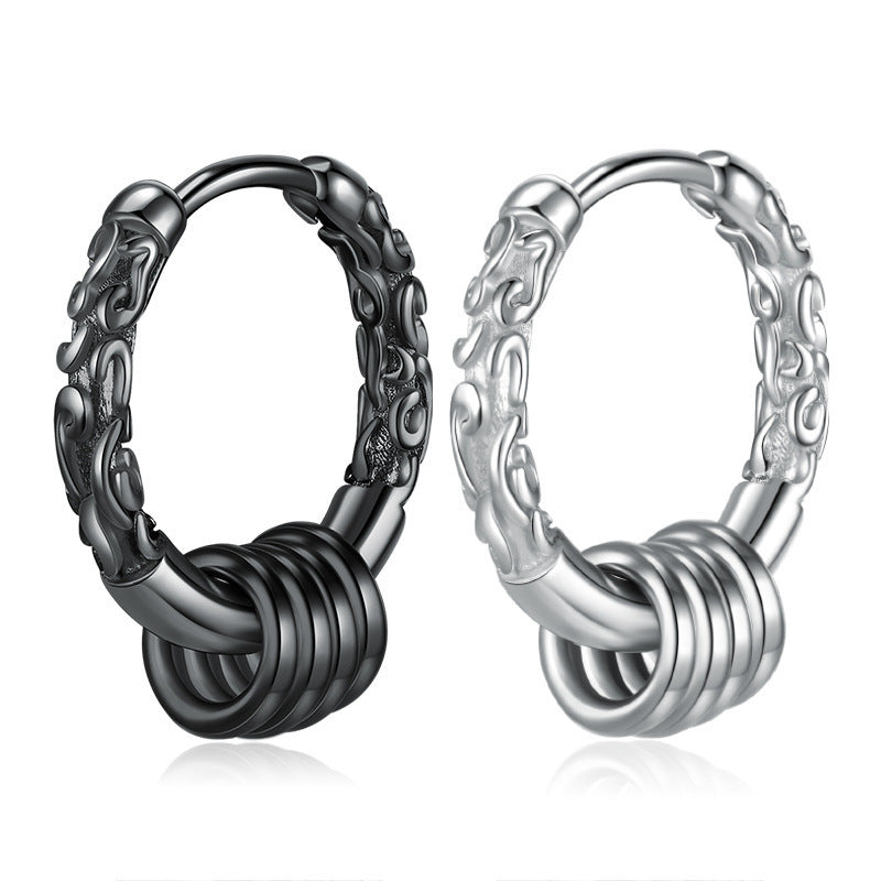 Men's Personality Trend Gold Hoop Stick Black Earrings
