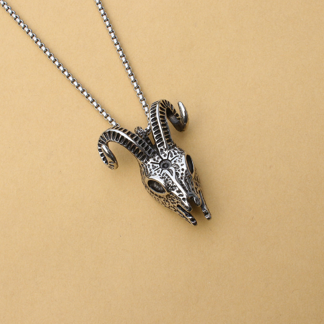 Men's Personality Trend Skull Sheep Head Titanium Necklaces