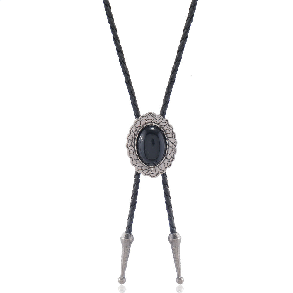 Men's Retro Trendy Turquoise Flower Alloy Polo Collar Necklaces