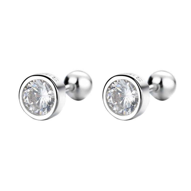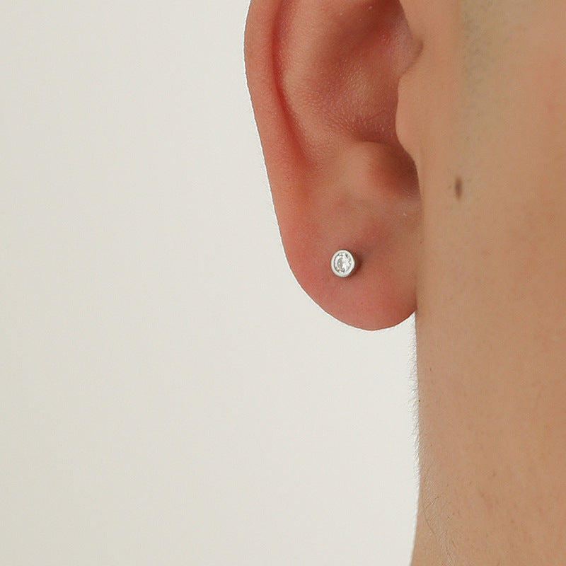 Men's Sier Needle Zircon Round Beads Thread Single Earrings