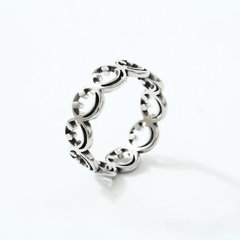 Men's Stainless Steel Ornament Laser Cut Hollow Smiley Face Titanium Rings