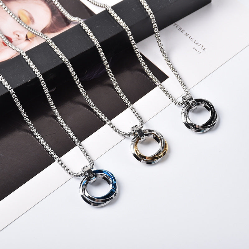 Men's Titanium Steel Blue Niche Sweater Chain Couple Necklaces