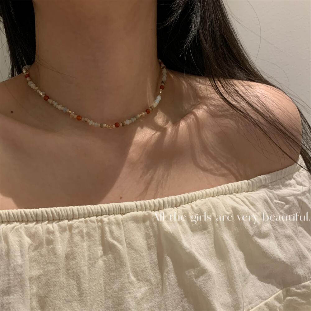 National Style Handmade Beaded Colorful Natural Stone Mori Necklaces