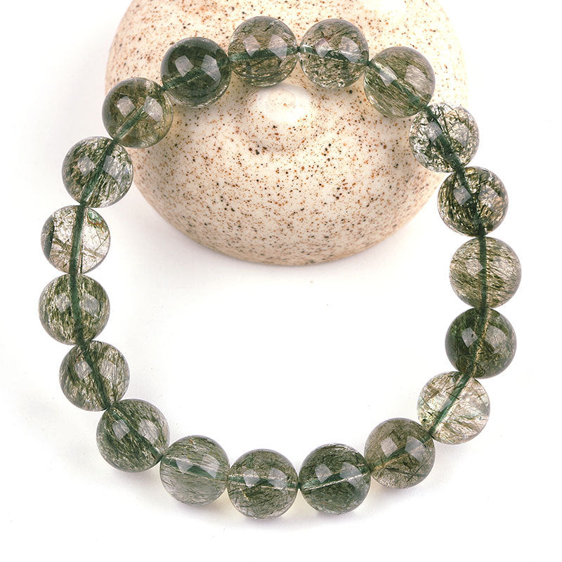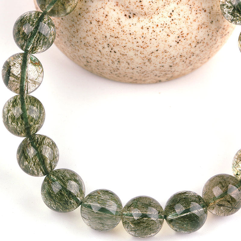 Natural Tourmaline Hair Emerald Green Crystal Transparent Bracelets