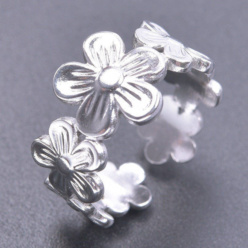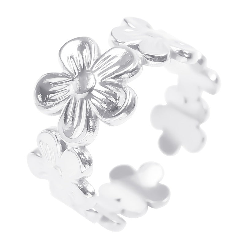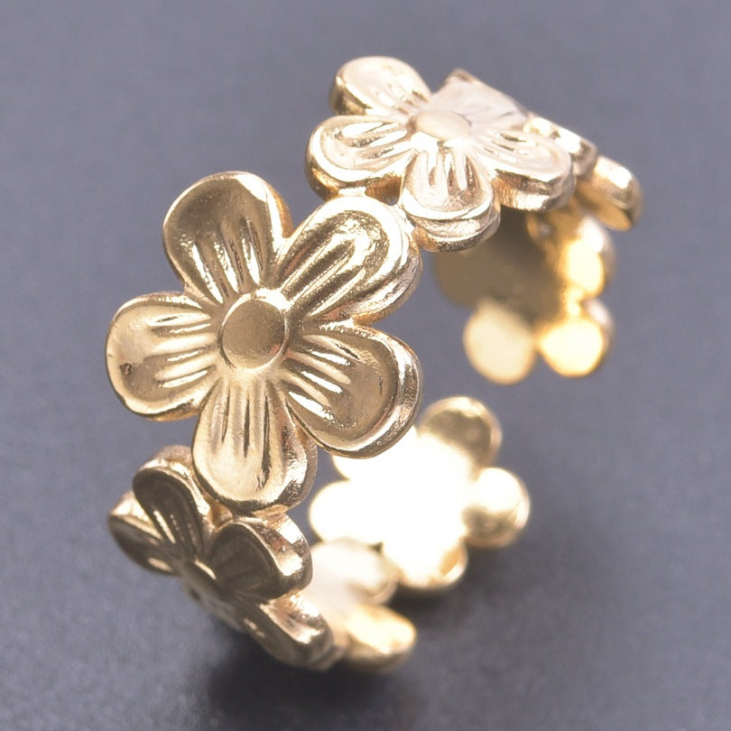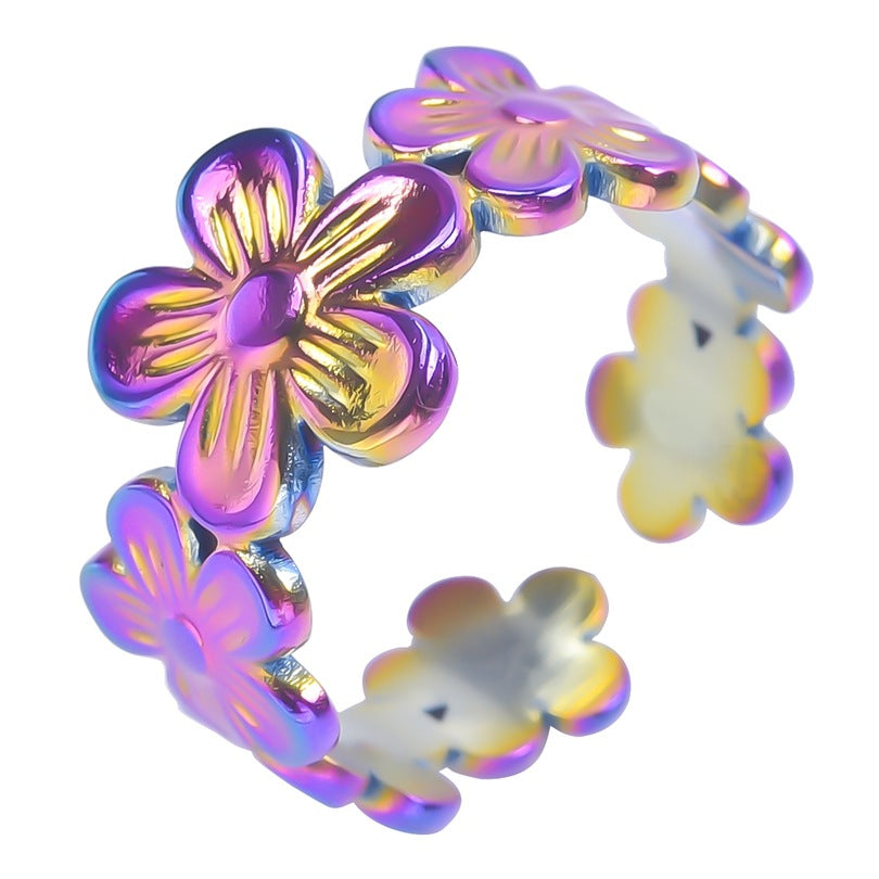 Niche Flower Colorful Golden Steel Titanium Rings