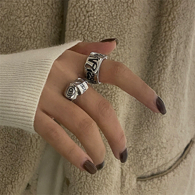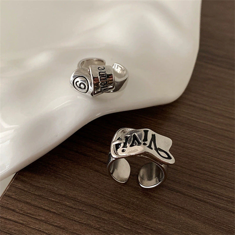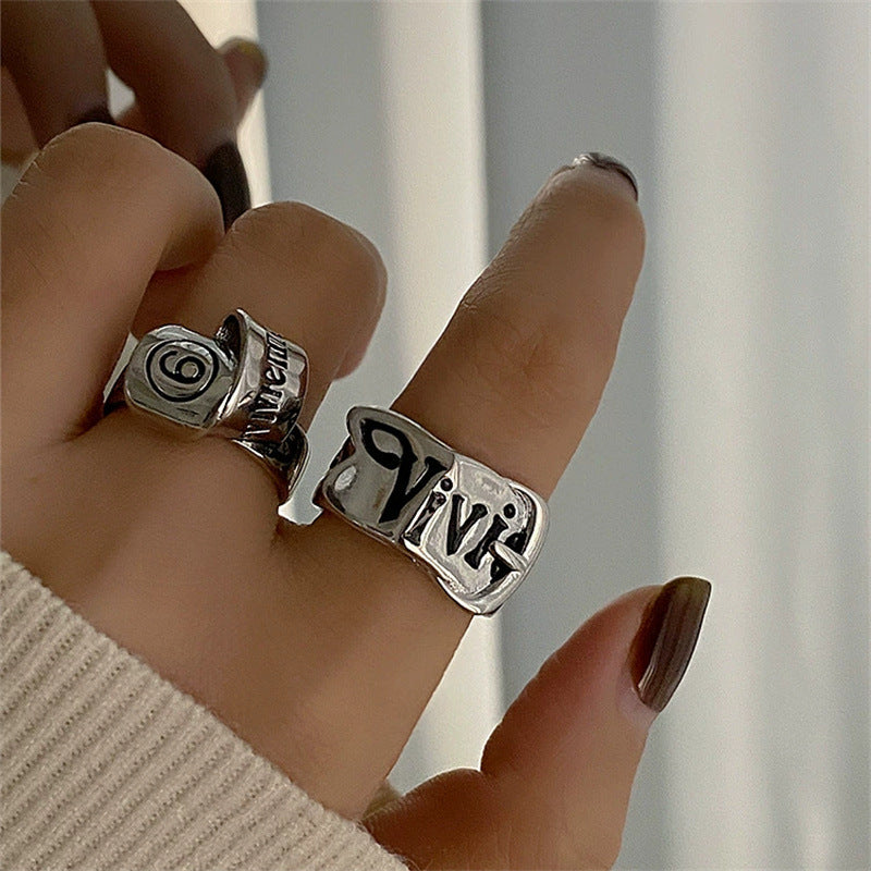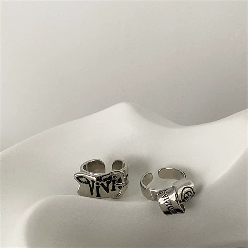 Niche High Sense Dark Style Open Letters Female Personalized Rings