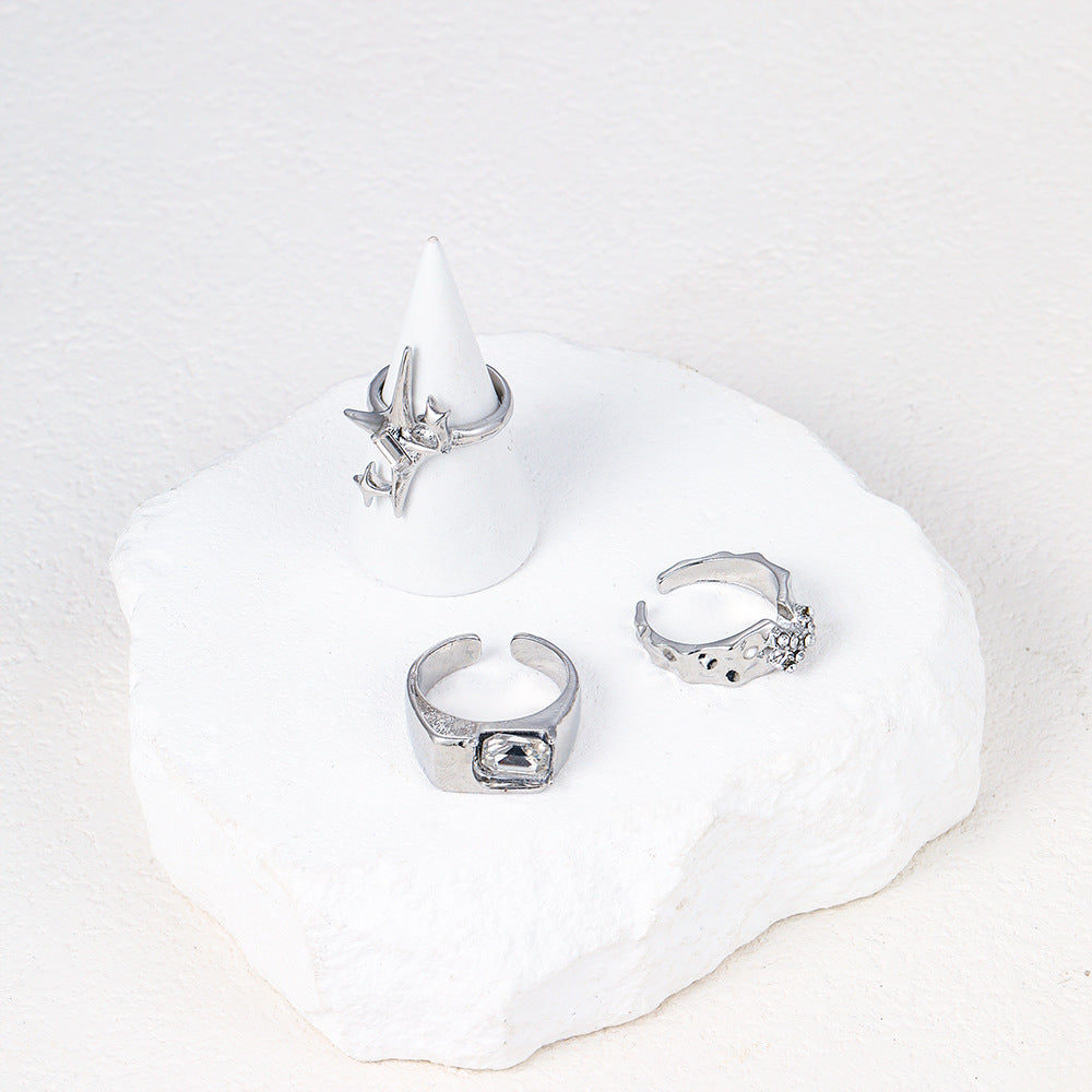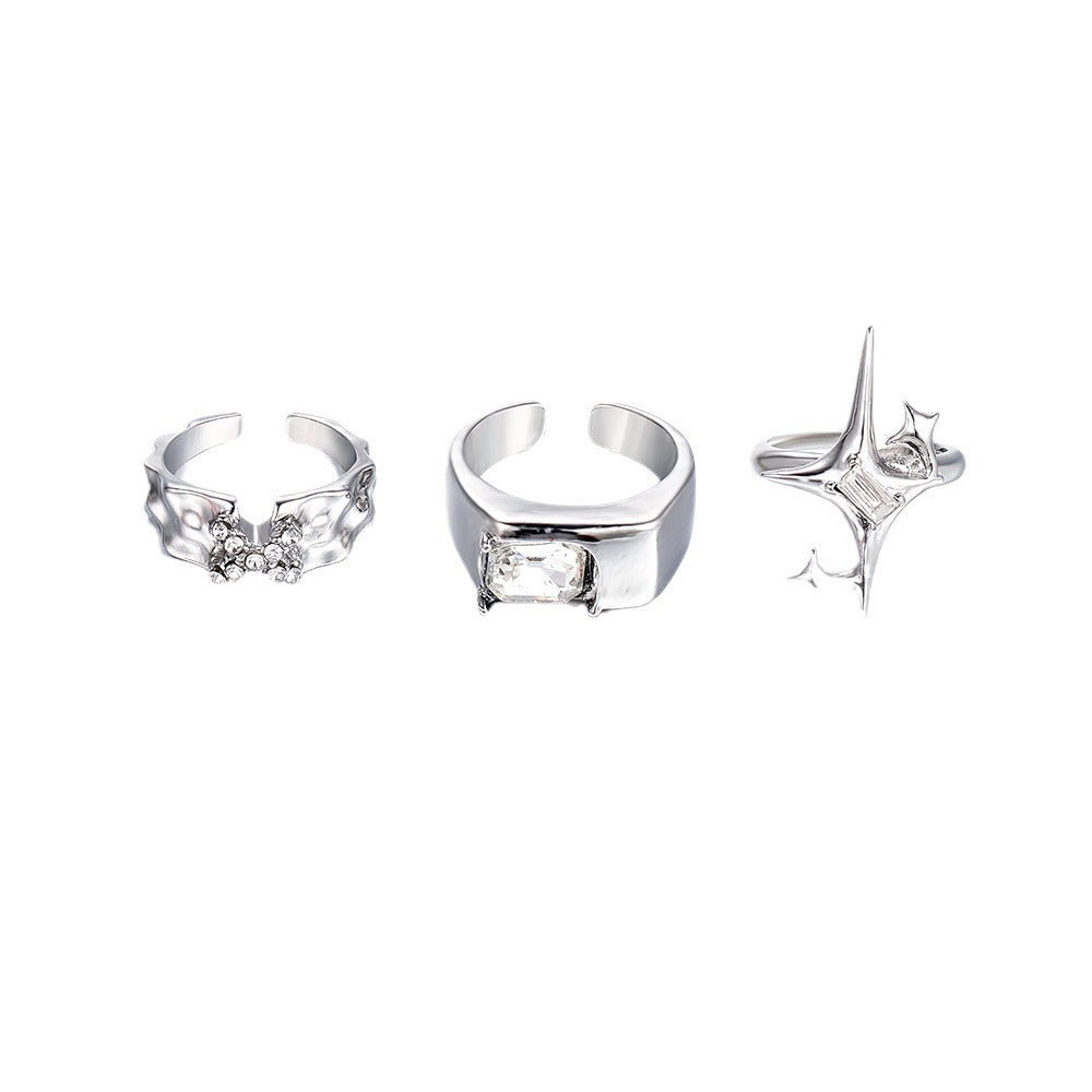 Open-end Zircon Three-piece Suit Female Personality Affordable Rings