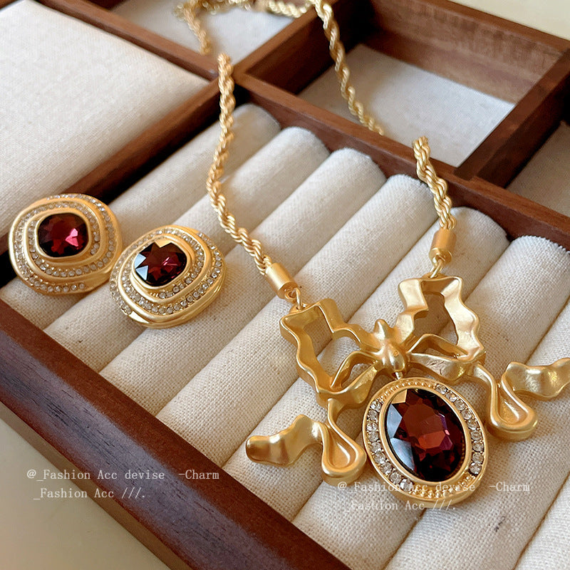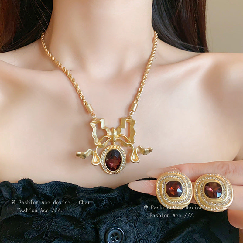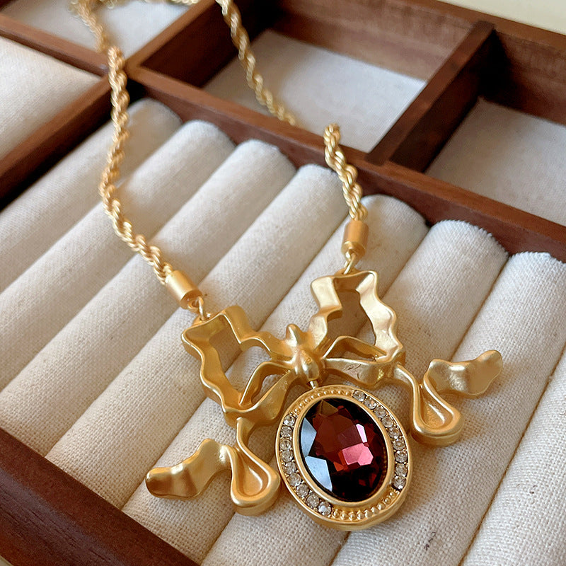 Ornament Diamond Oval Pleated Bow Fashion Retro Necklaces