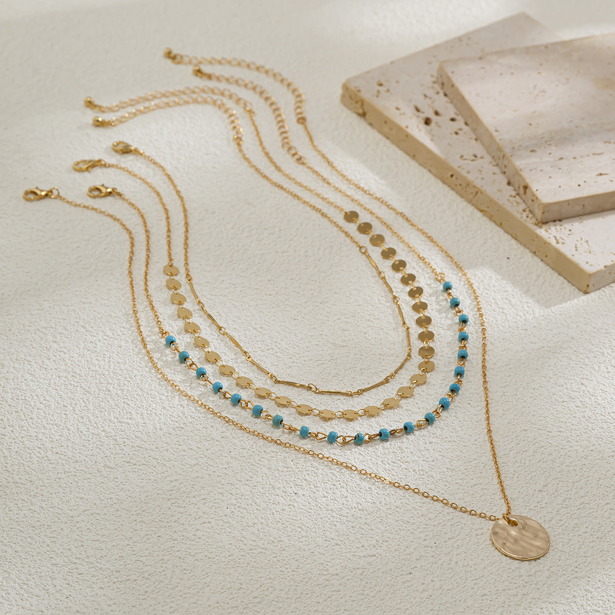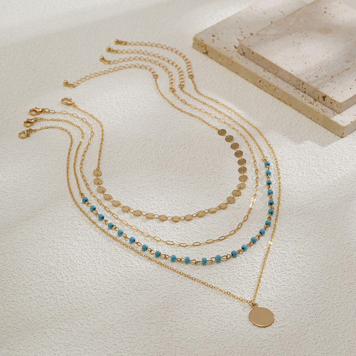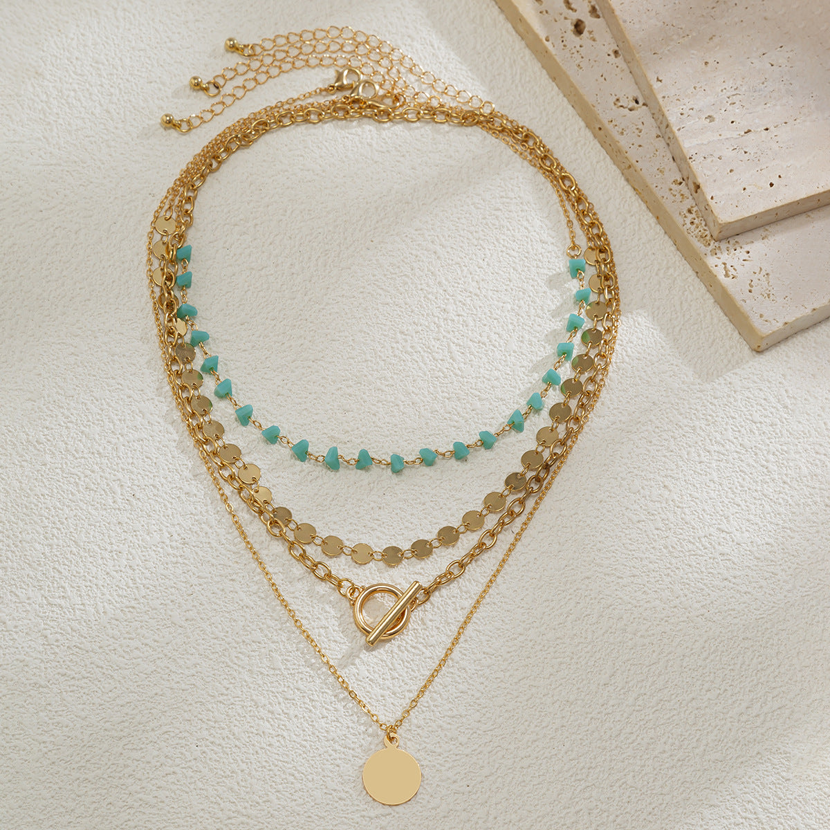 Ornament Niche Turquoise Mixed Handmade Chain Sequins Flower Disk Necklaces