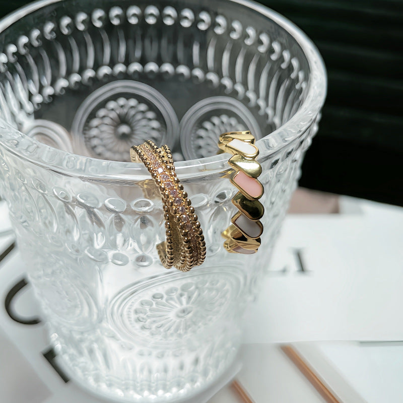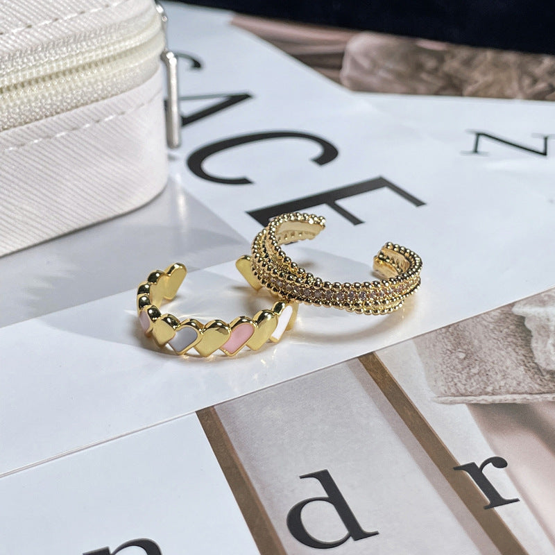 Pink Diamond Open-end Zircon Female Cross Cold Rings