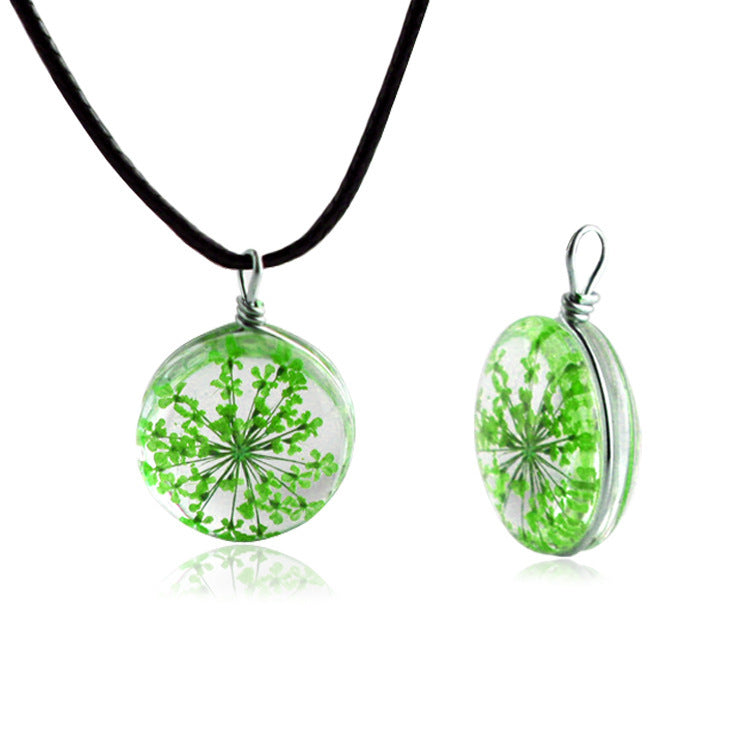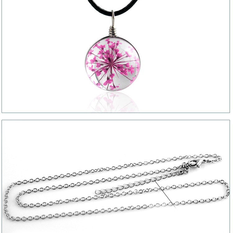 Plant Dried Flowers Gypsophila Time Stone Handmade Glass Necklaces