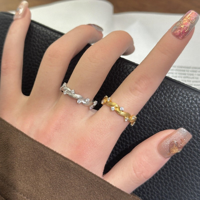 Plant Series Inlaid Spot Drill Brushed Thorns Rings