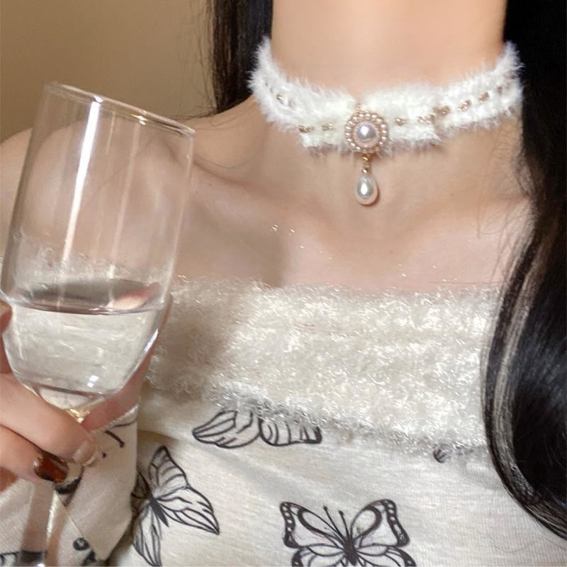 Plush Snowflake Pearl Female Niche Design Light Necklaces