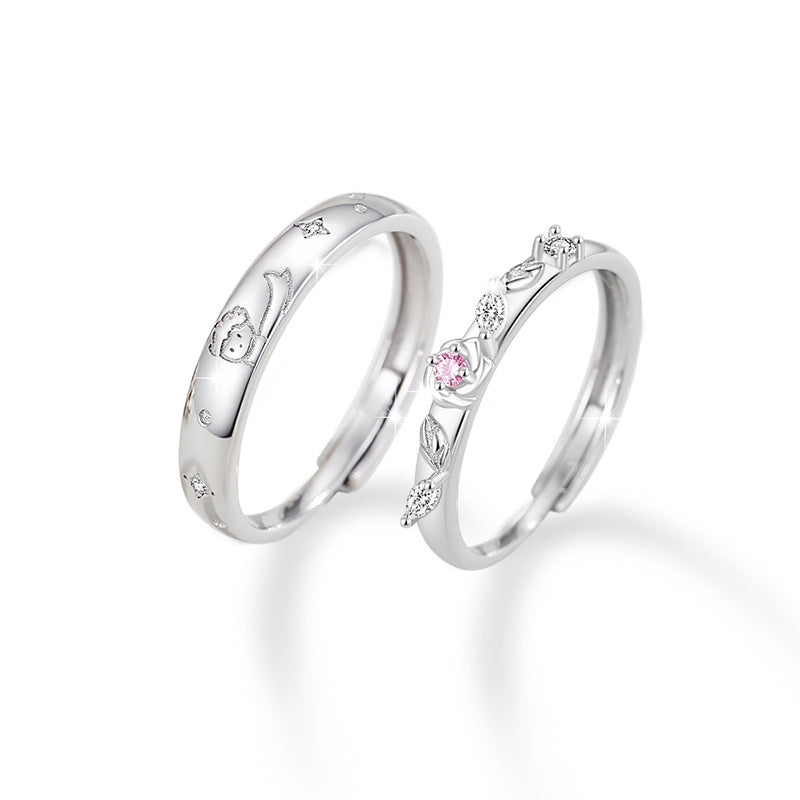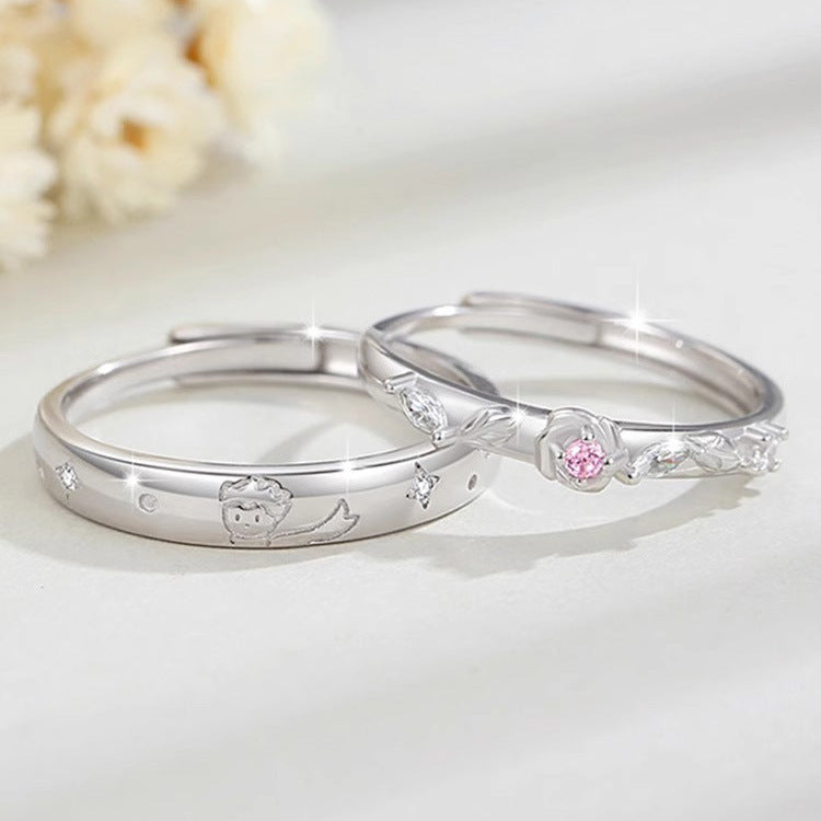 Pure Sier Little Prince Rose Couple Design Rings