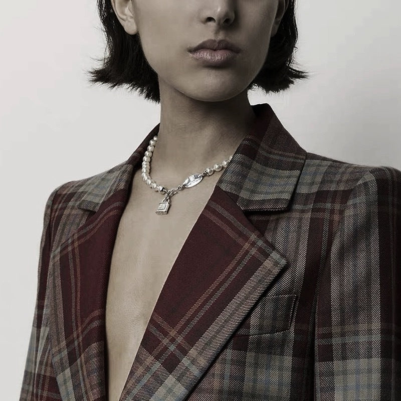 Queen Mother Female Retro Patchwork Pearl Gold Lock Necklaces