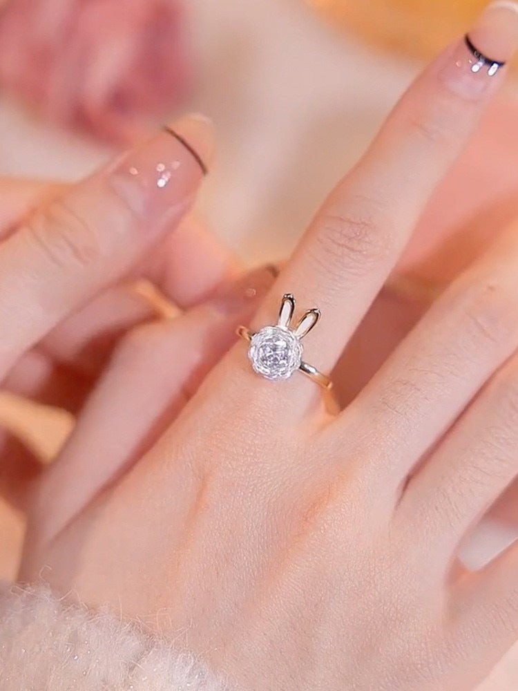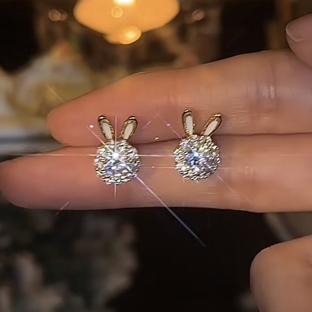 Rabbit Three-piece Rotatable Cute Sier Needle Earrings