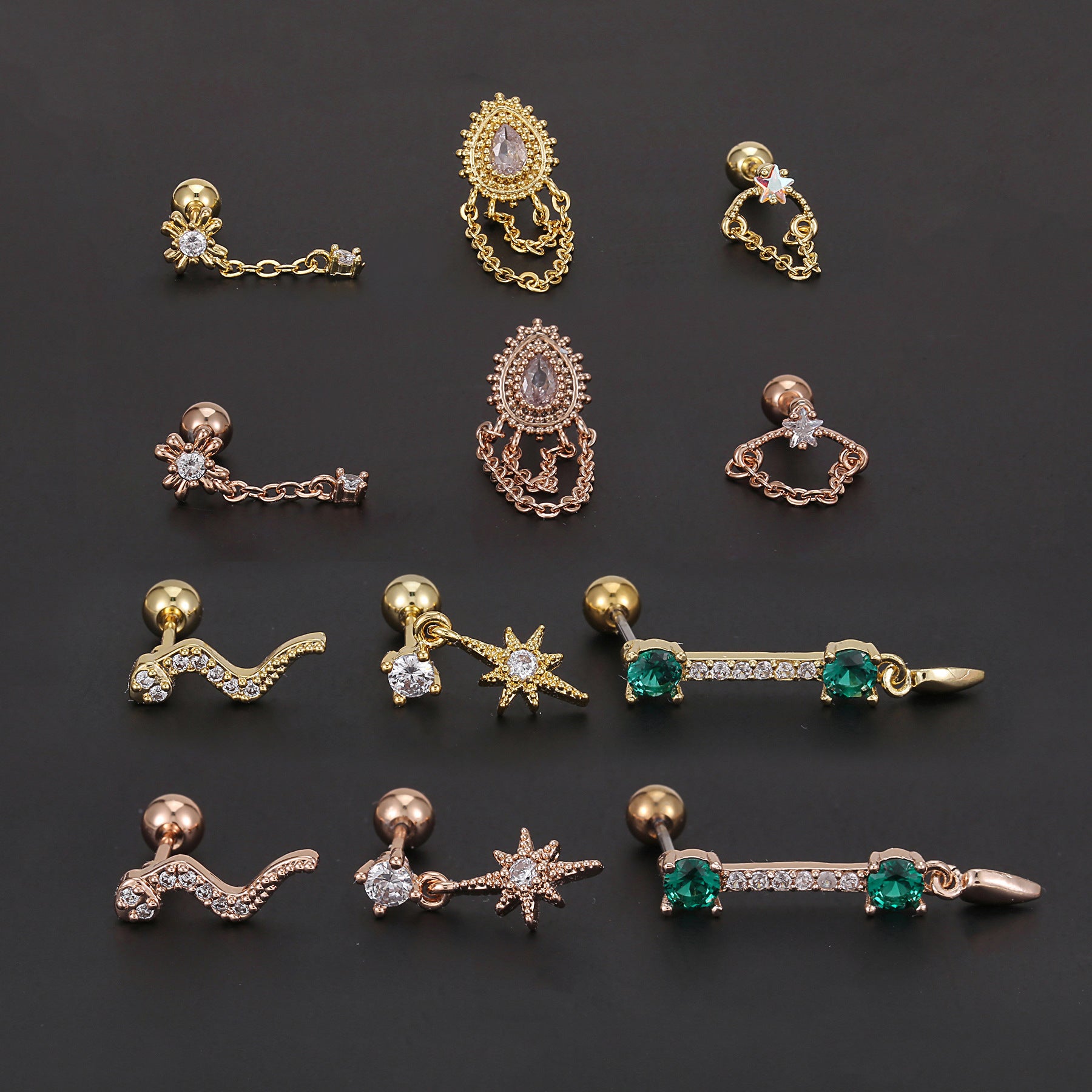 Rod Piercing Micro Inlaid Zircon Double Earrings