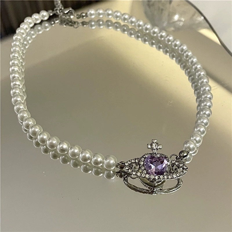 Saturn Romantic Universe Purple Love Planet Pearl Sweet Necklaces