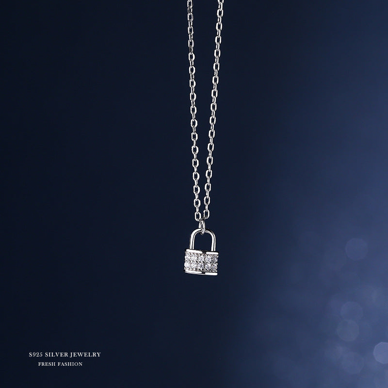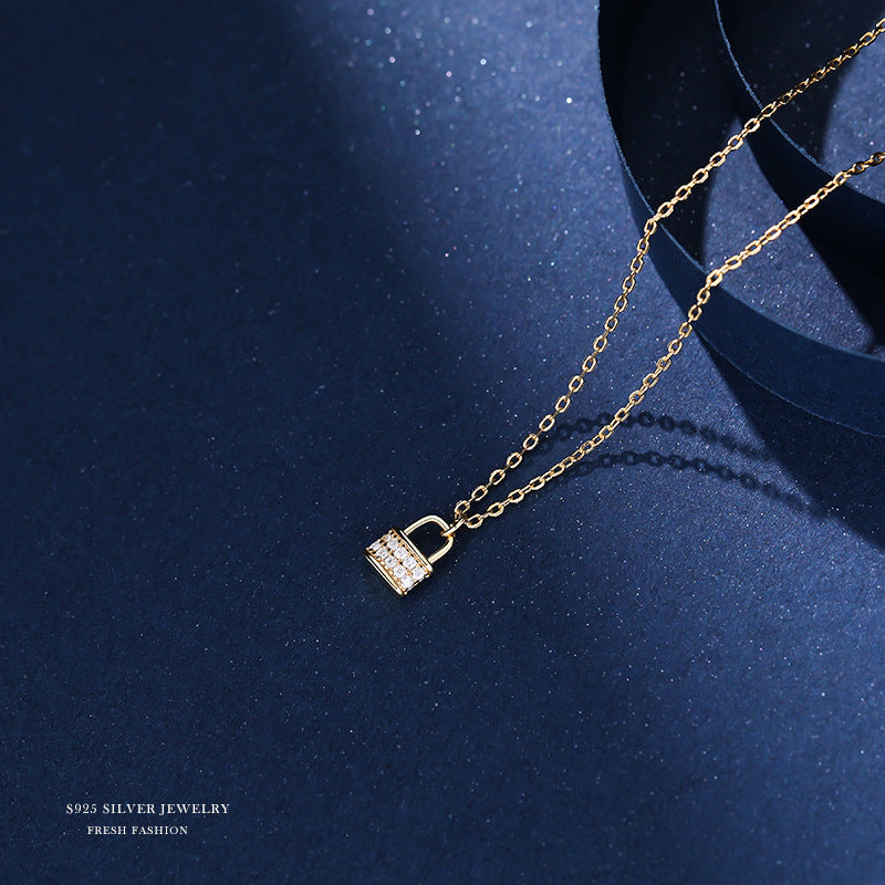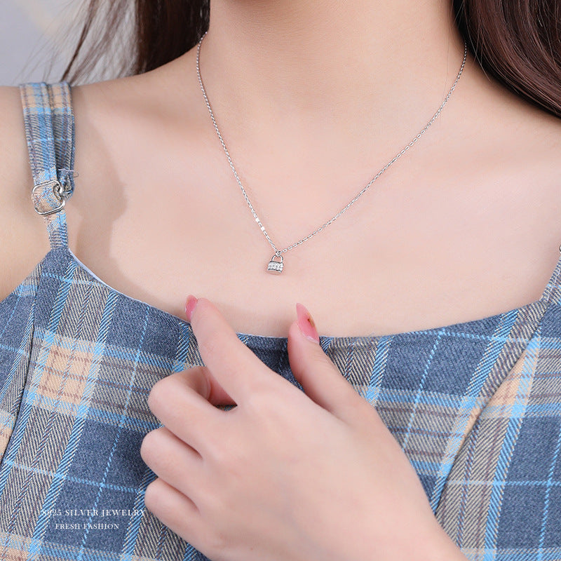 Sier Mild Luxury Retro Small Lock Bag Clavicle Necklaces