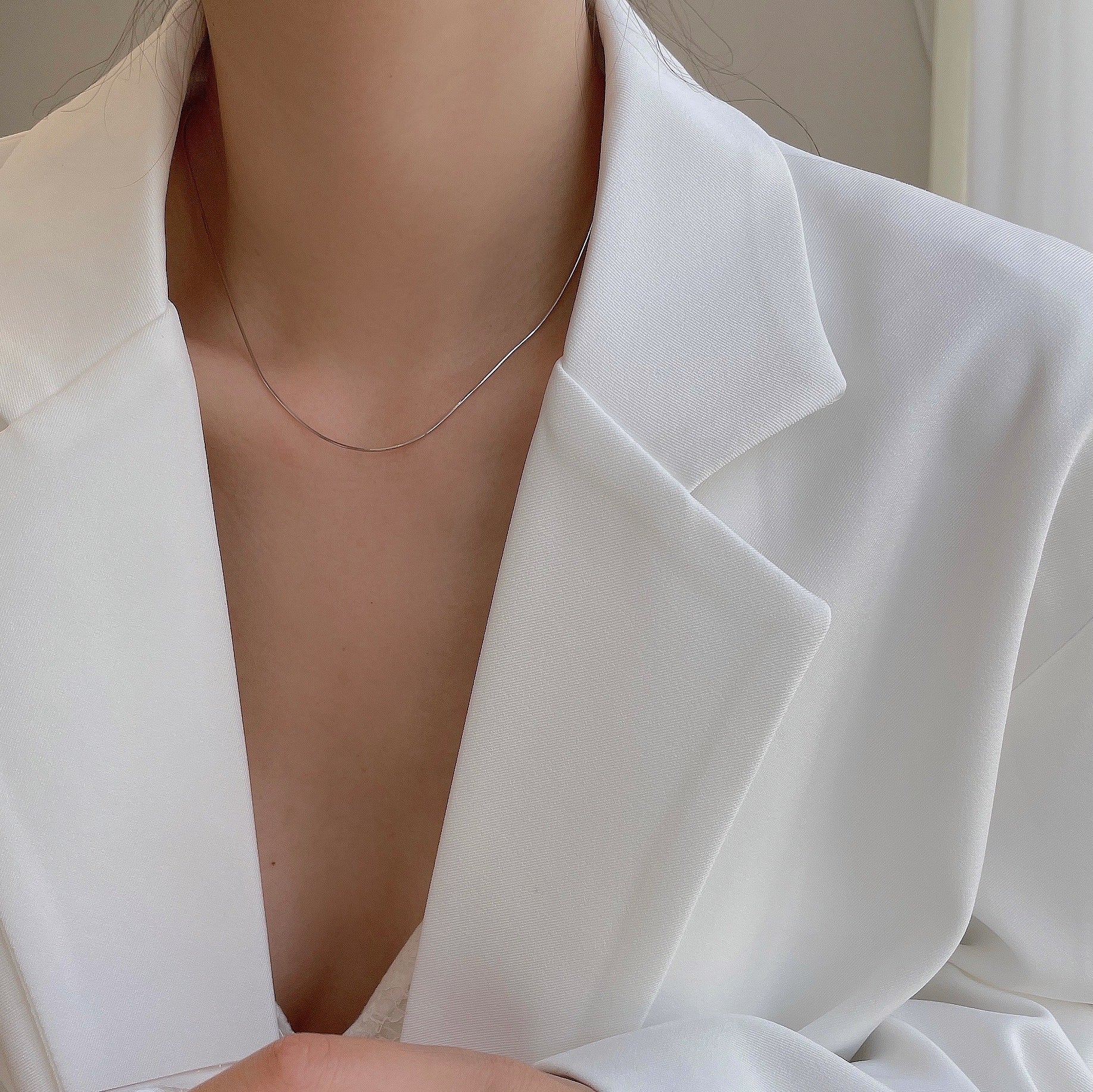Sier Simple Octagonal Snake Bones Chain Pure Necklaces
