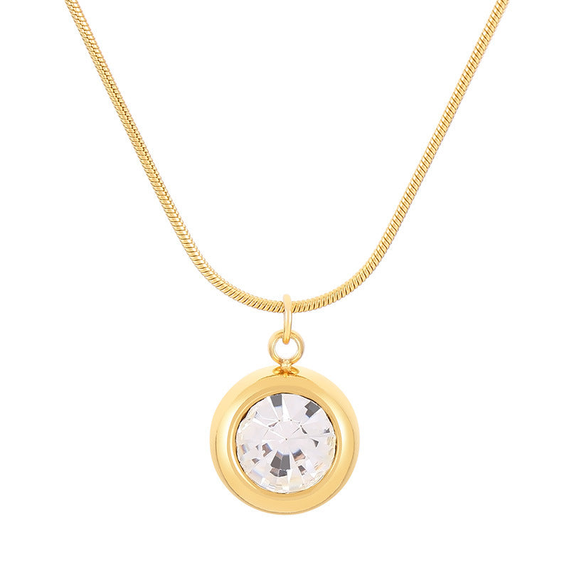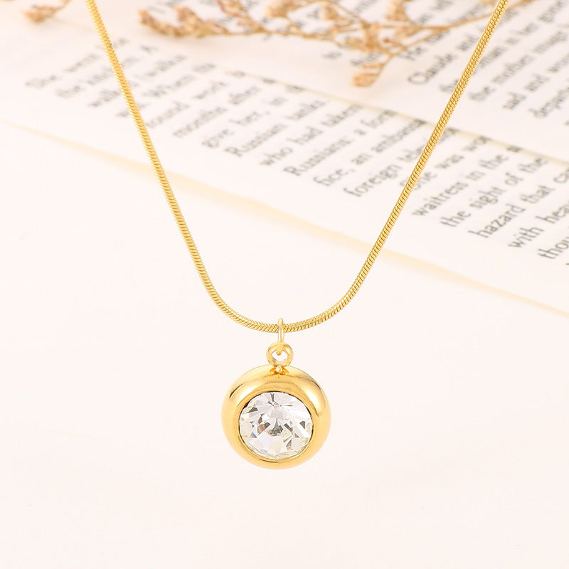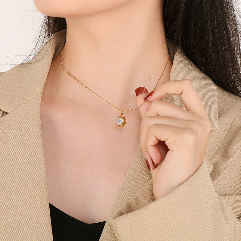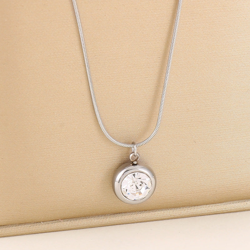 Simple Graceful Rhinestone Inlaid Round Titanium Steel Clavicle Pendants