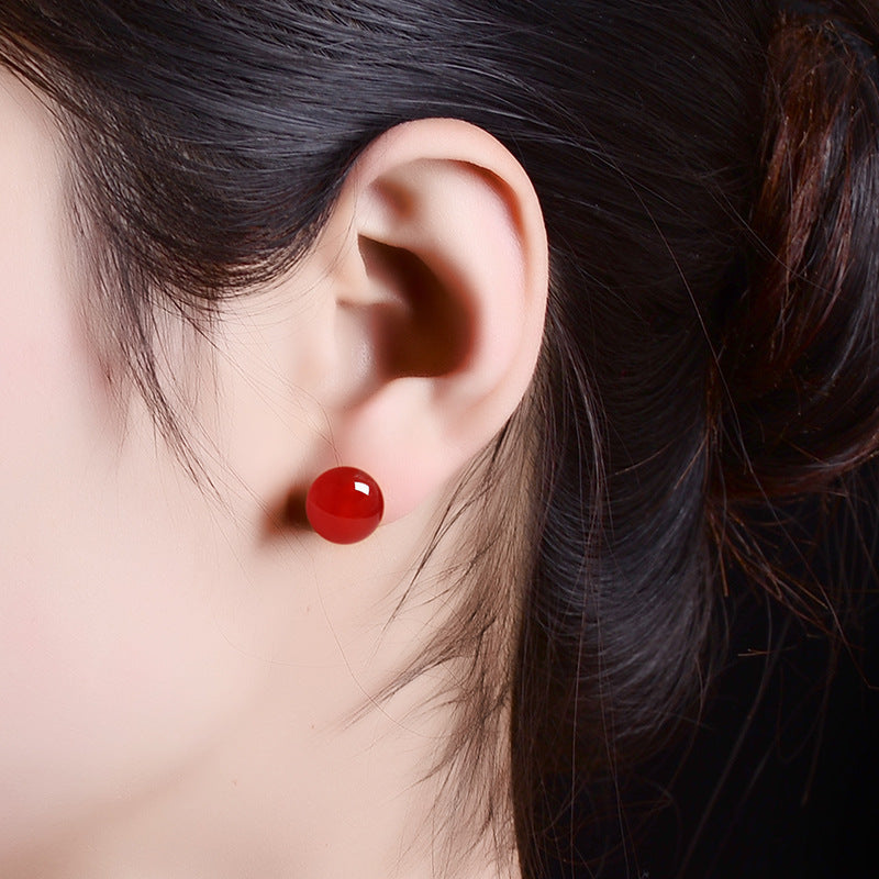 Simple Natural Red Black Agate Female Ear Earrings