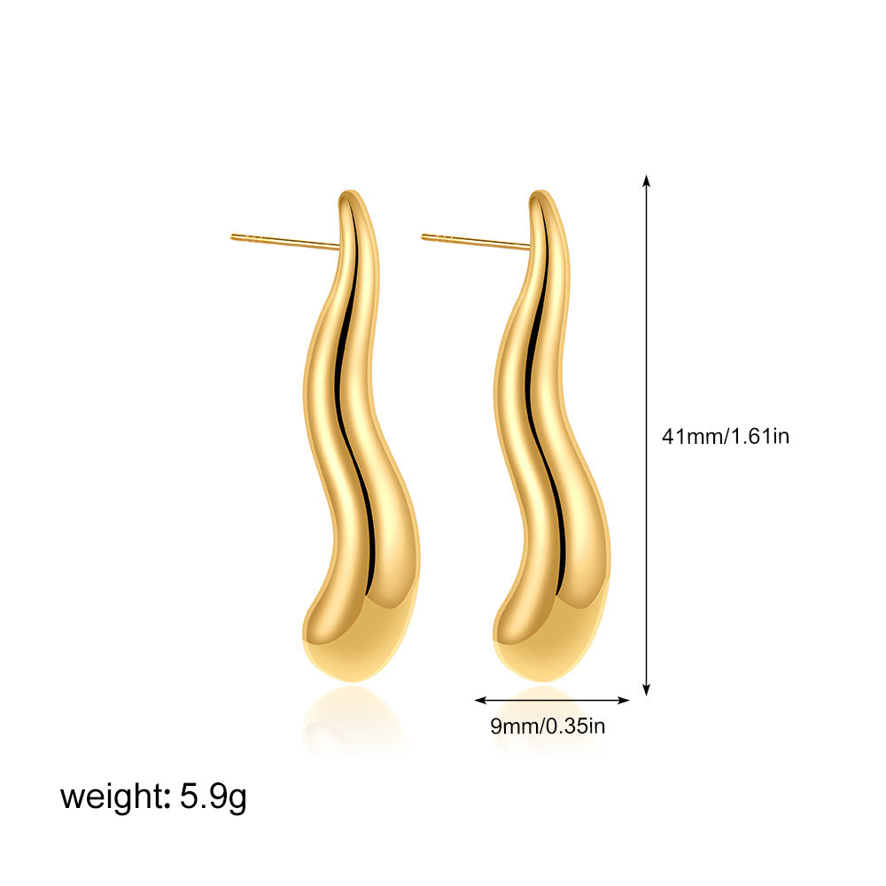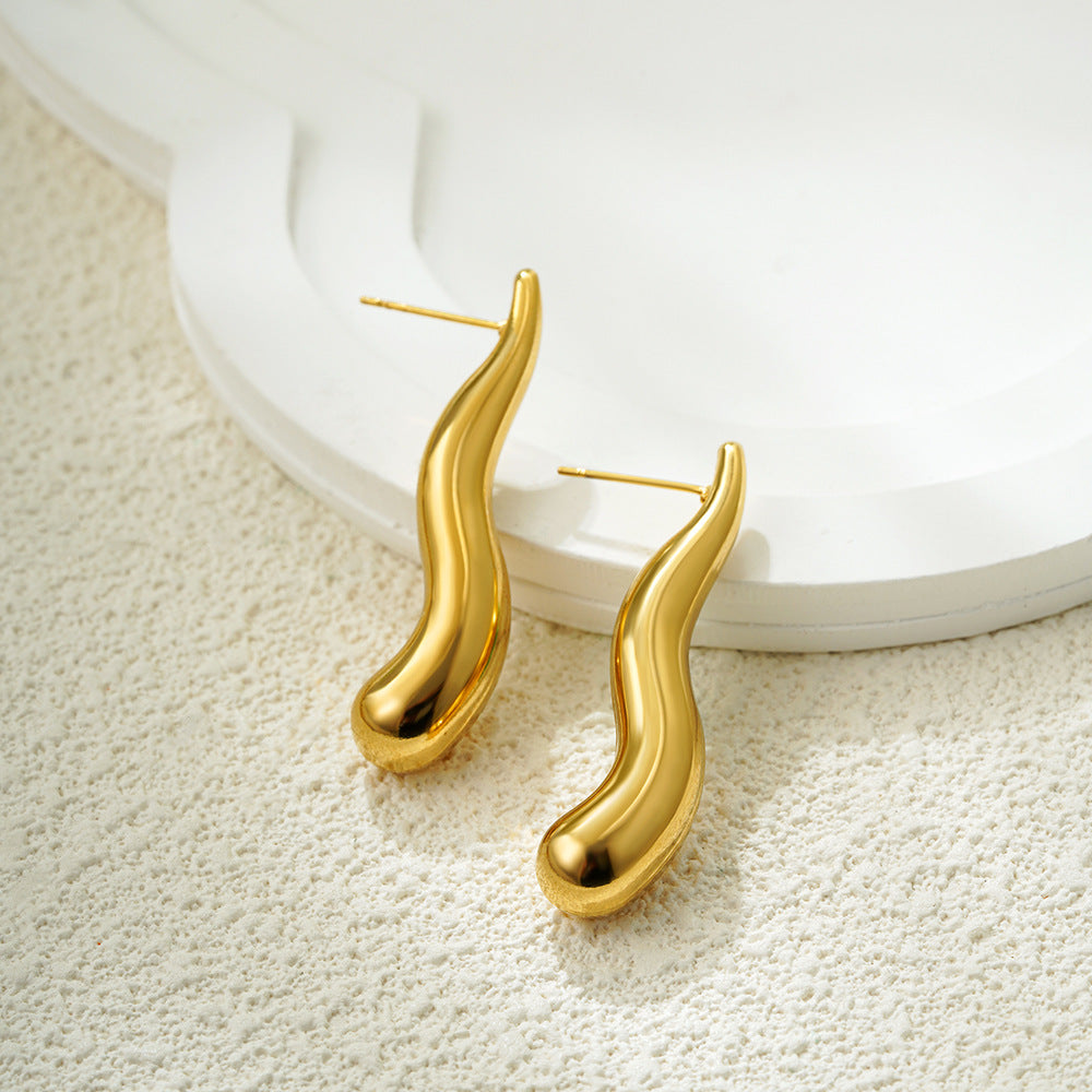 Stainless Steel Gold Drop Simple Glossy Earrings