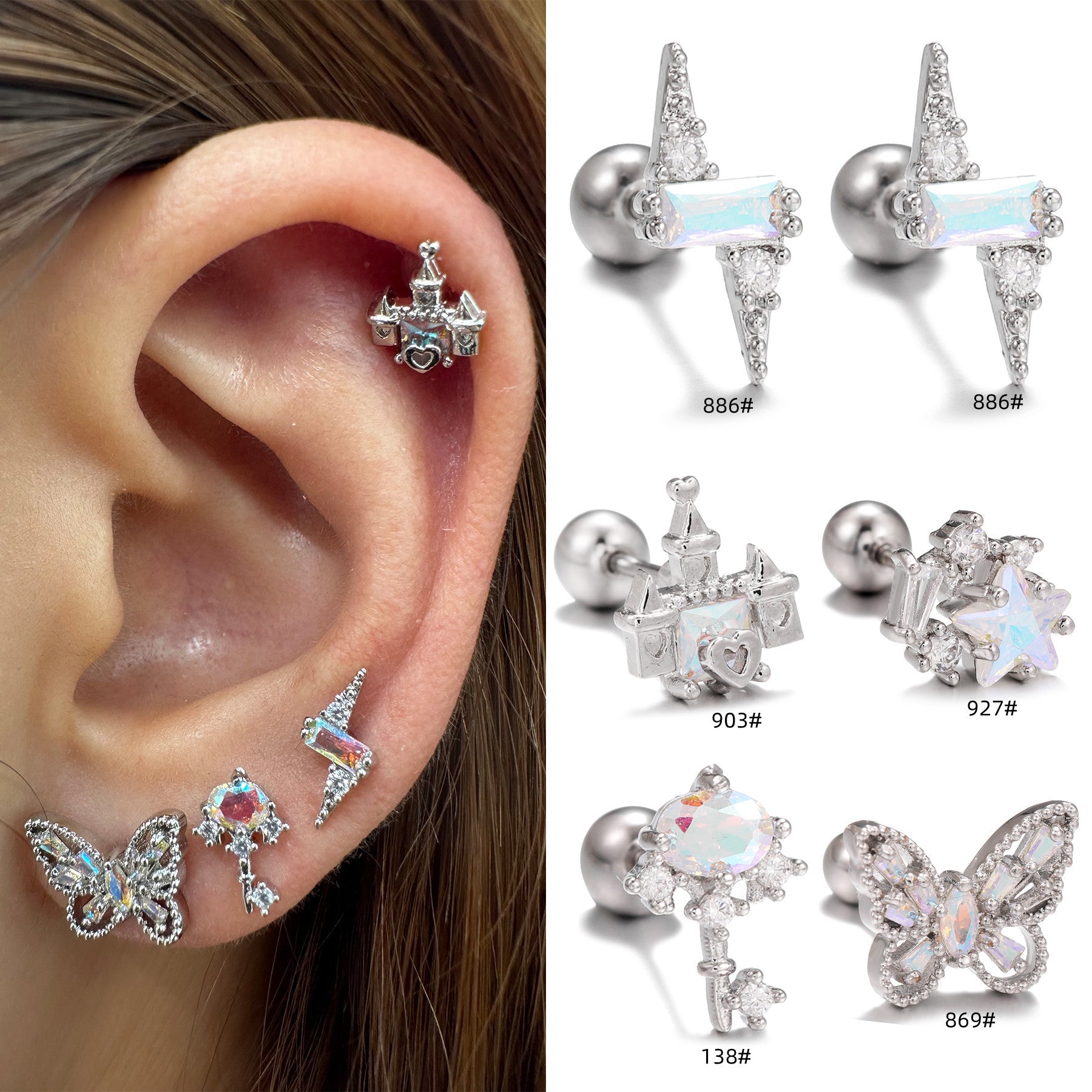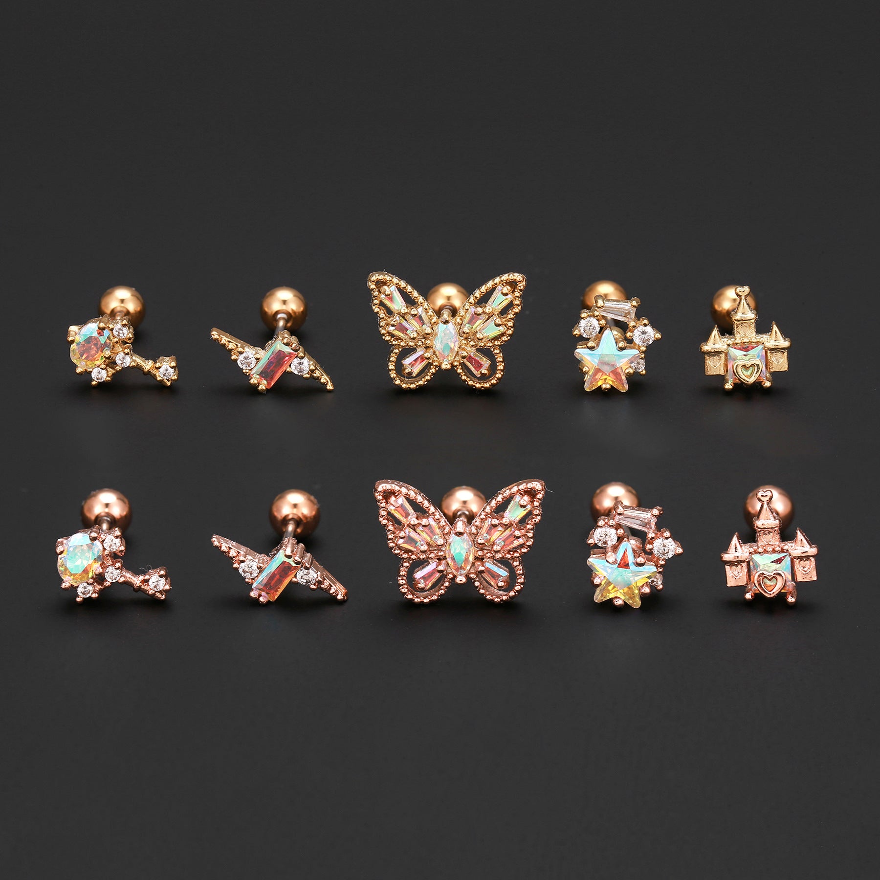 Stainless Steel Piercing Ear Zircon Animal Butterfly Screw Twist Earrings