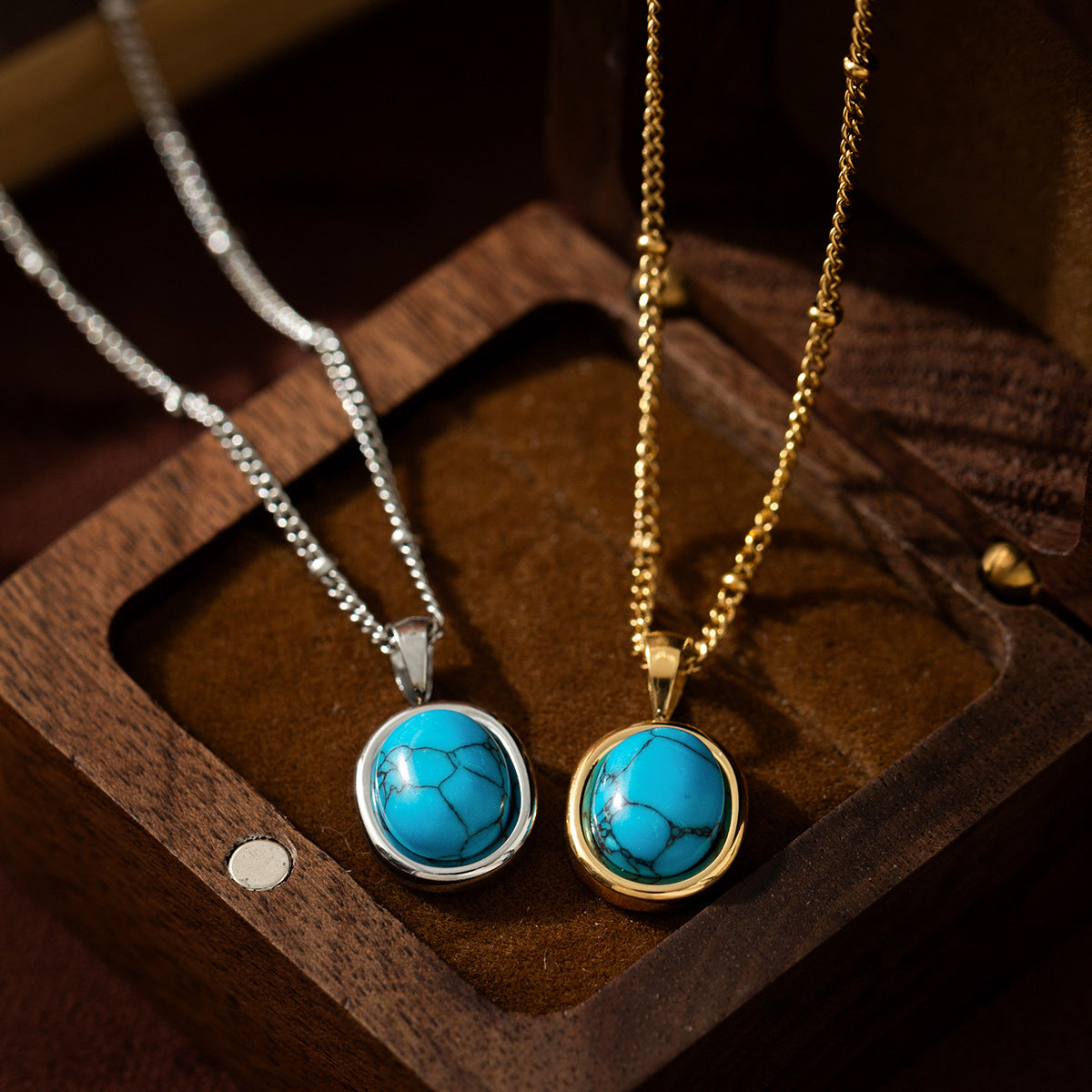 Steel Fashion Natural Turquoise Furnace Vacuum Necklaces
