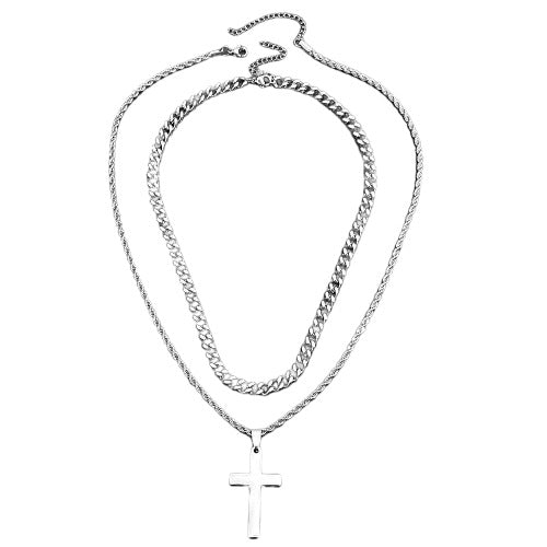 Steel Stainless Double Layer Cross Female Male Necklaces