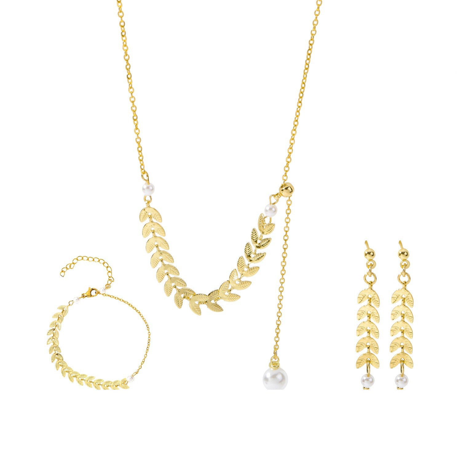 Steel Three-piece Set Niche Design Wheat Pearl Necklaces