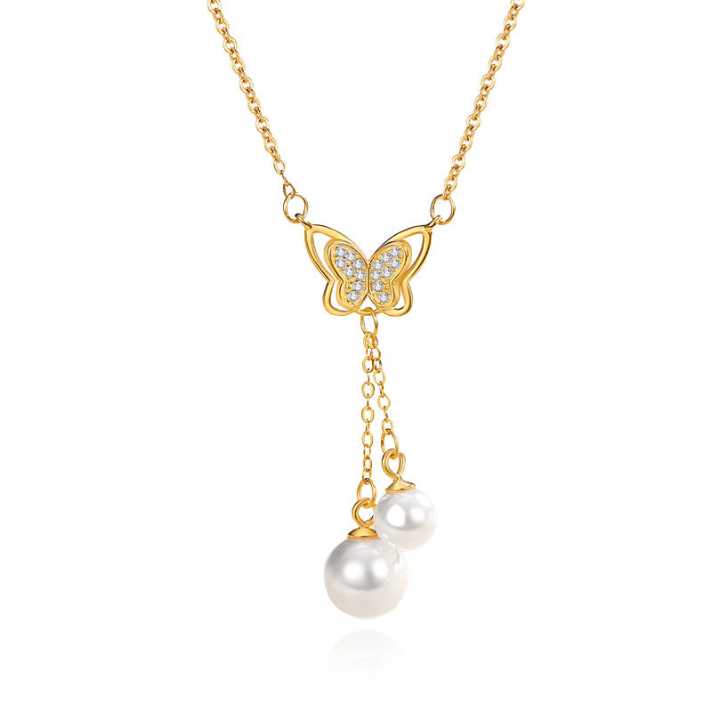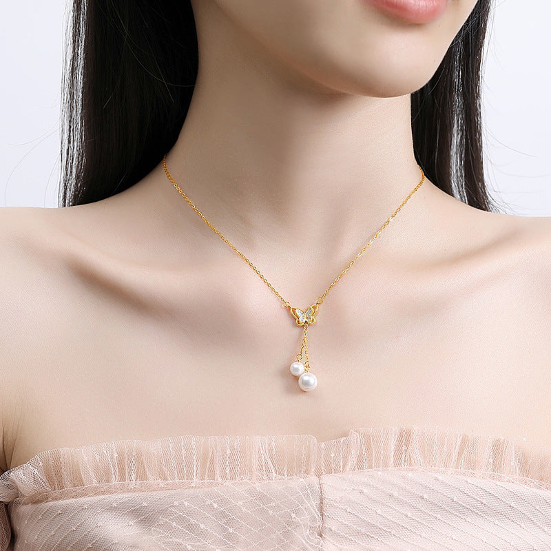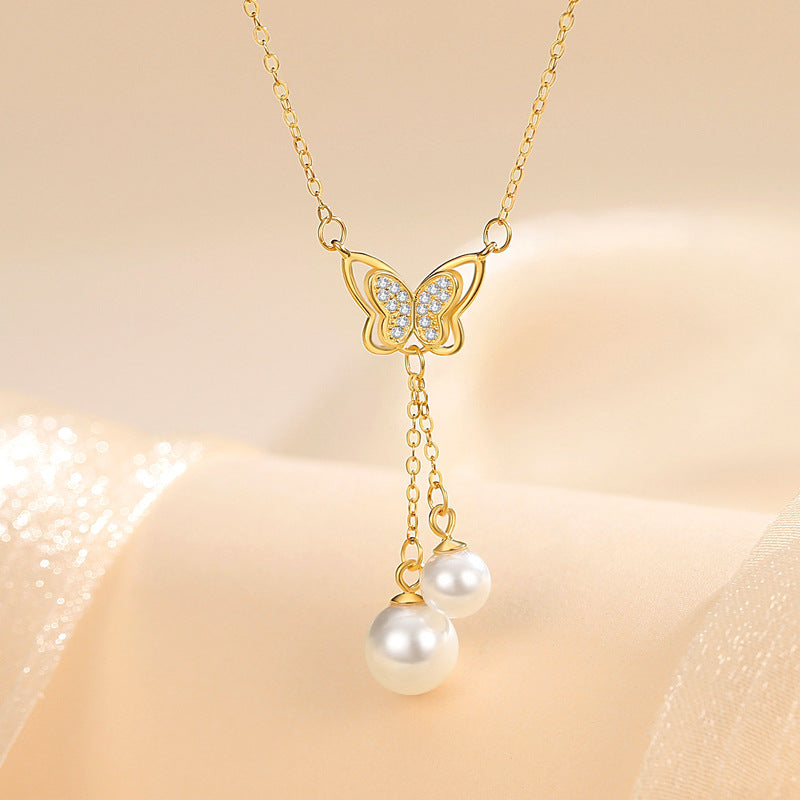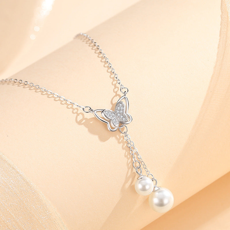 Sterling Sier Butterfly Pearl Tassel Niche Clavicle Necklaces