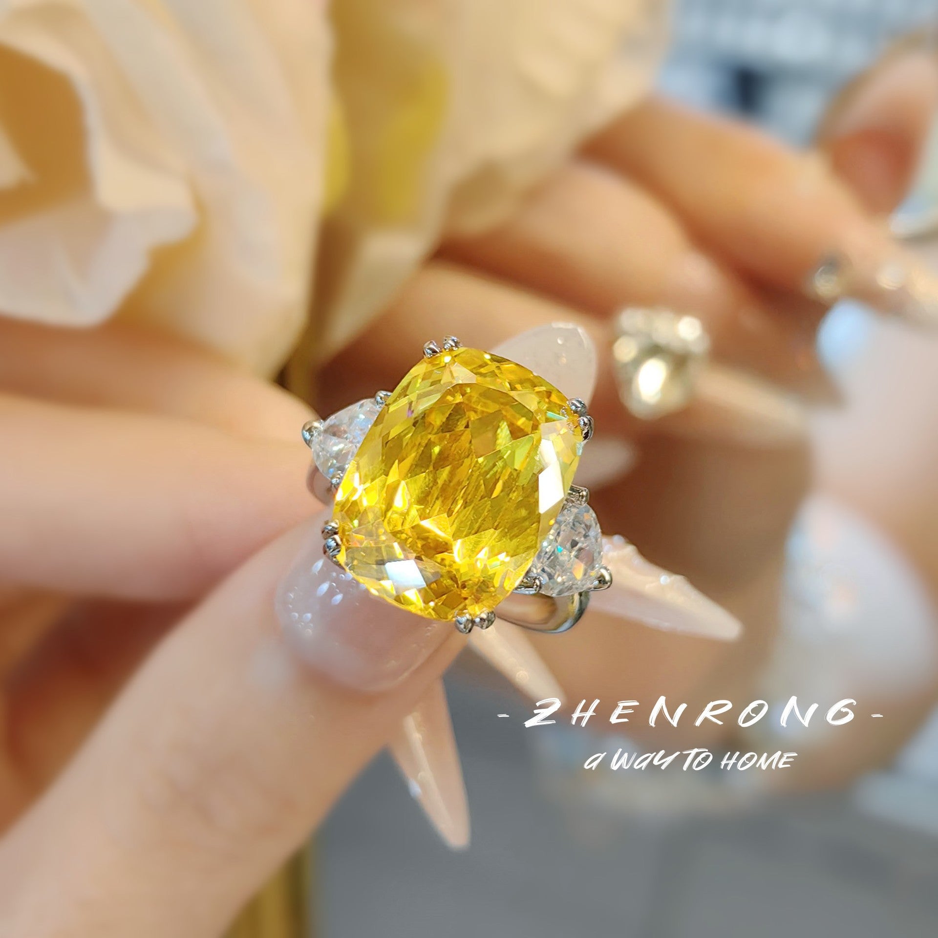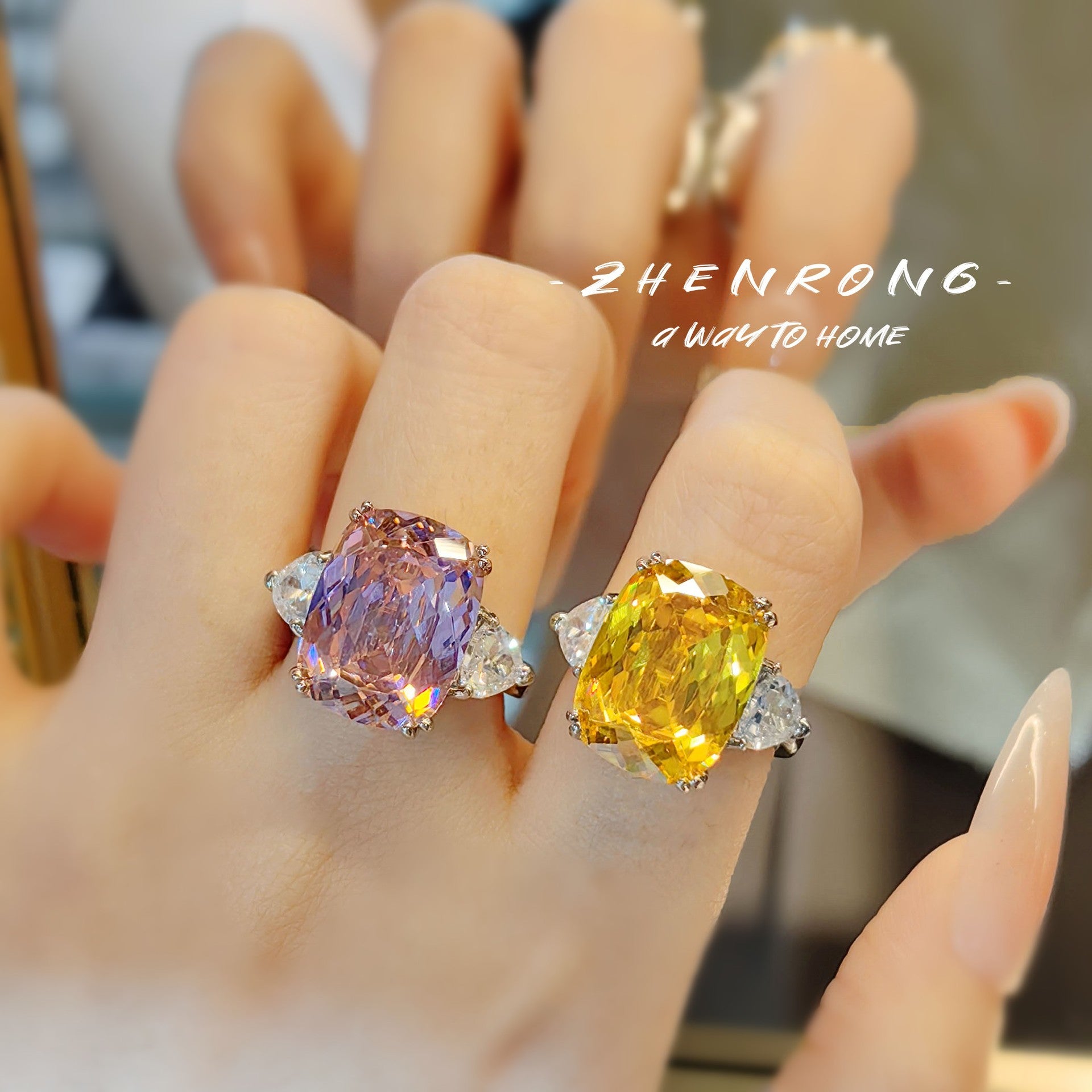 Super Shiny Luxurious Cut Long Pillow-shaped Pink Zircon Rings