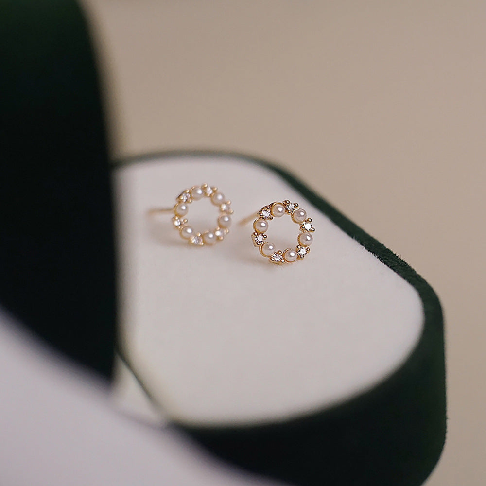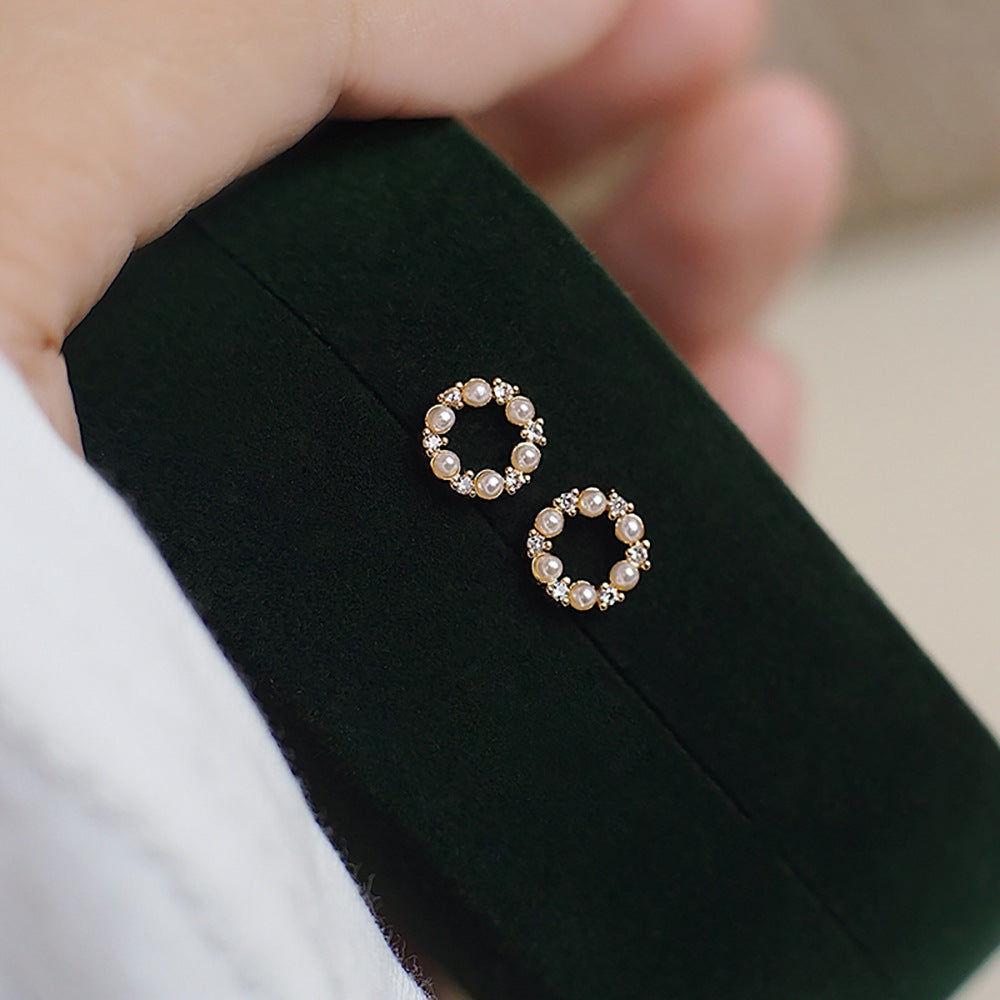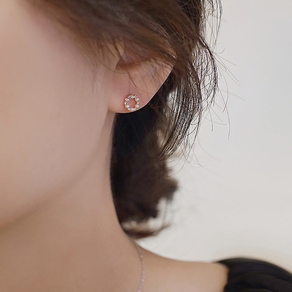 Sweet Micro Rhinestone Small Pearl Donut Earrings