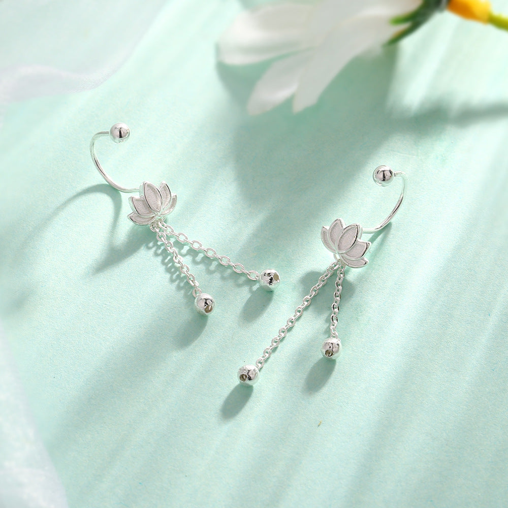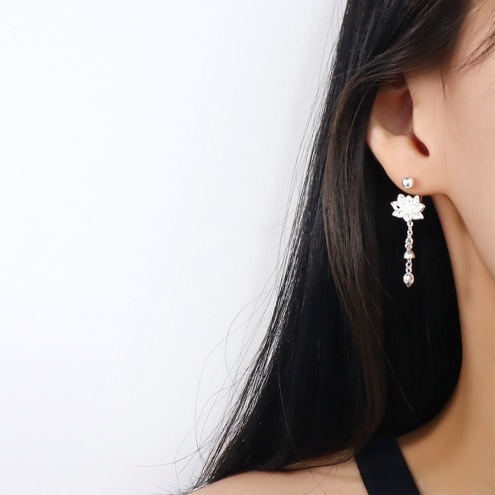 Tightening Buckle Tassel Lotus National Fashion Super Fairy Elegant Earrings