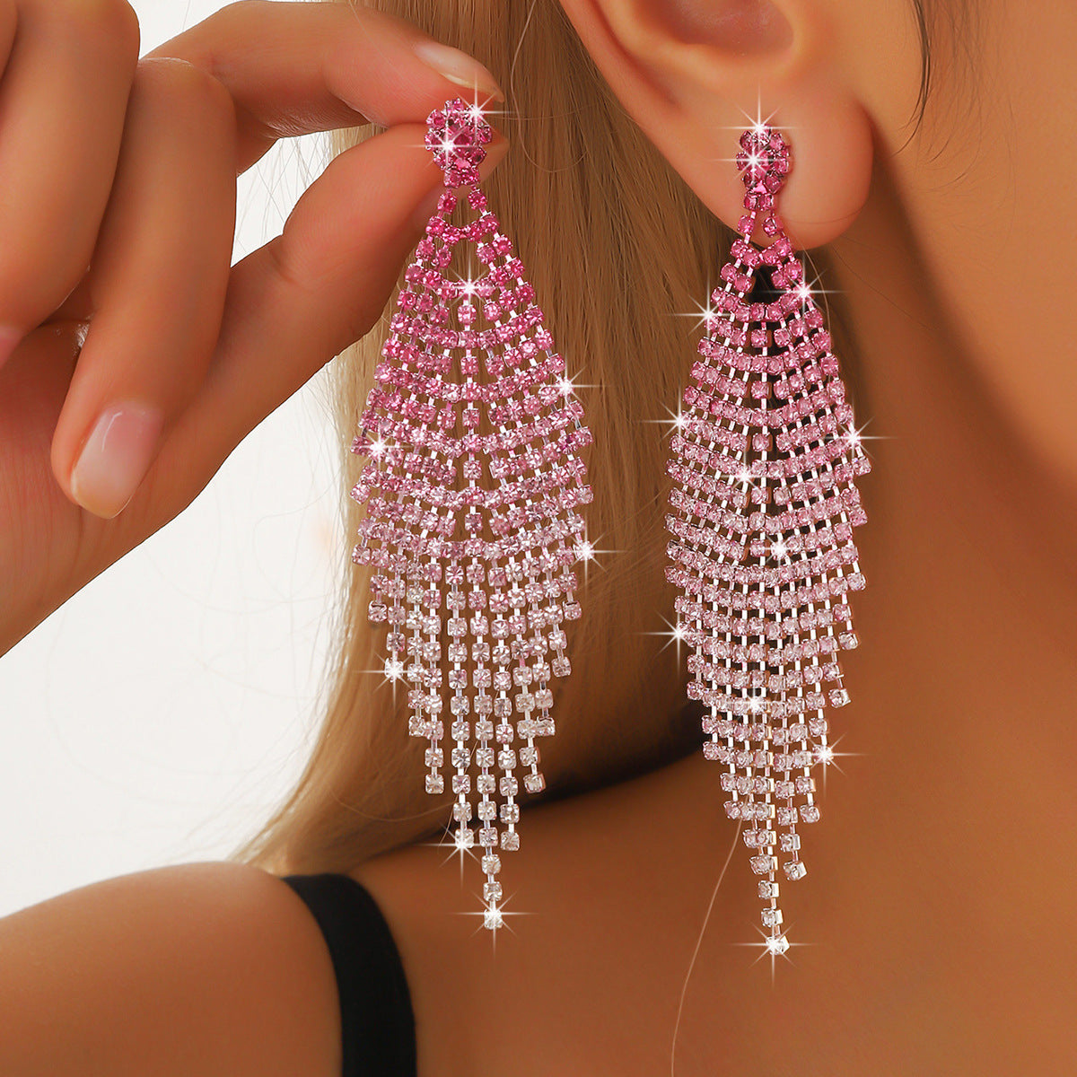 Trendy Full Rhinestone Tassel High-grade Affordable Earrings