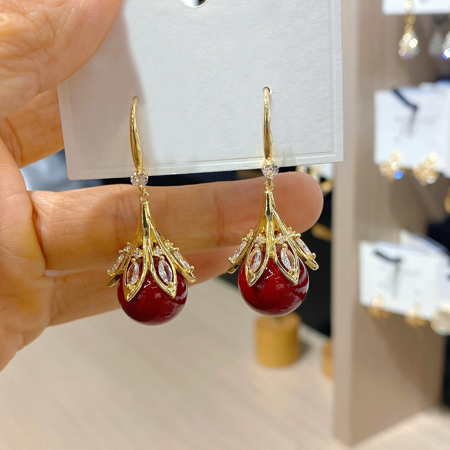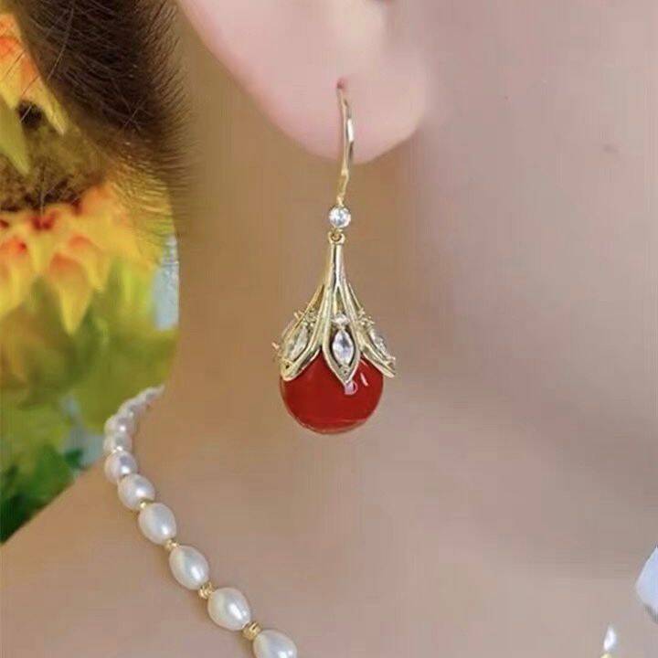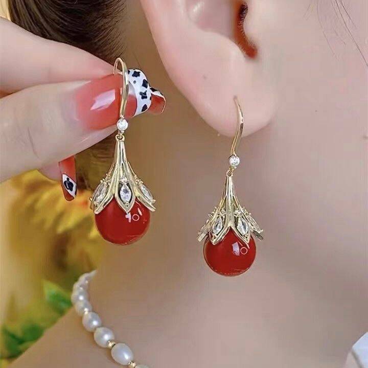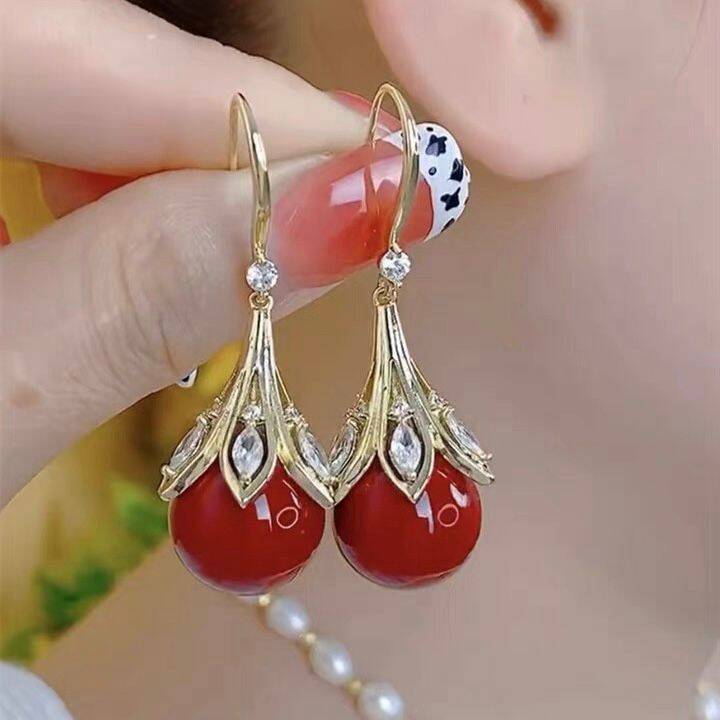Trendy Red Bulb Light Luxury Refined Grace Festive Design Earrings