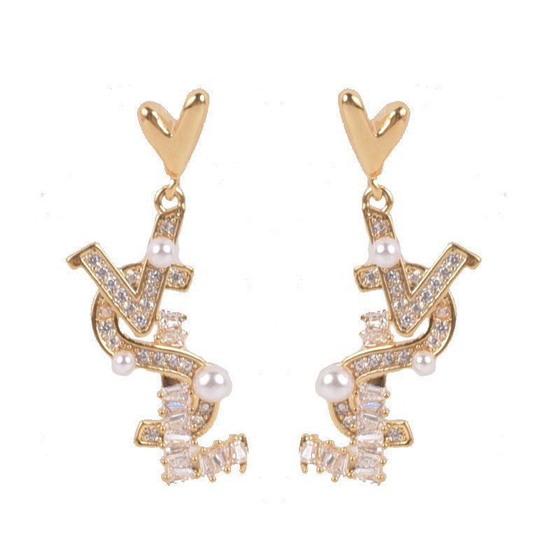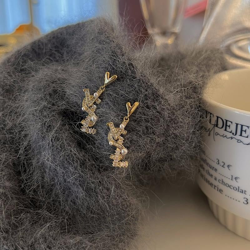 Unique Design Sense English Letter Pearl Ear Light Earrings